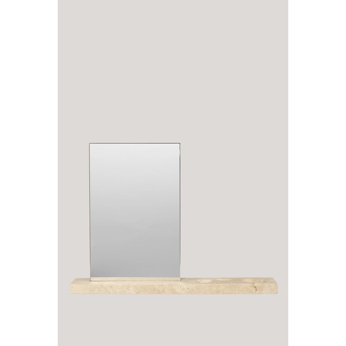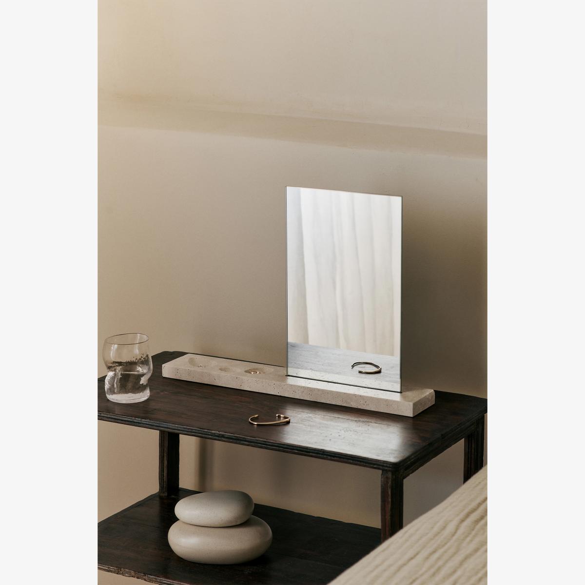 The Caseta Table Mirror is a stylish and elegant addition to any vanity or dressing area. Named after the Spanish word for ‘small house,’ it creates a sense of intimacy and personal space. The sleek glass mirror is set into a solid travertine base, known for its natural texture and durability. * By Ferm Living * Travertine and glass * Wipe with a dry cloth * Imported