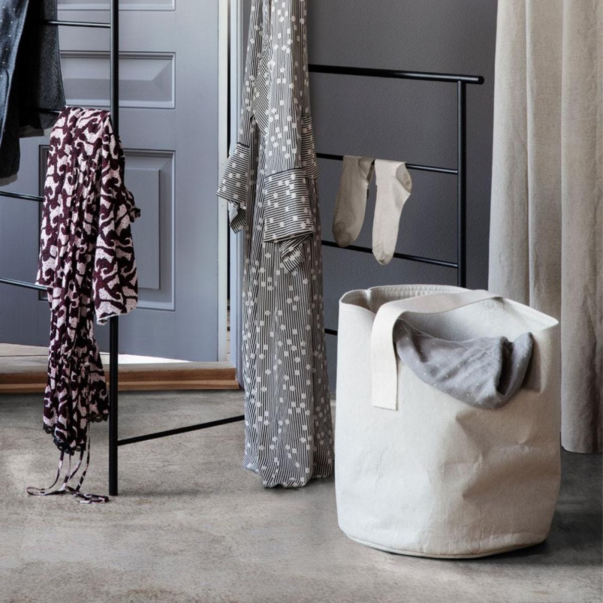 This laundry basket from Ferm Living is made from organic cotton chambray ' a plain-weave fabric that's durable, breathable and soft to the touch. Ideal for use anywhere in the home, the bag has a modern design and a long webbing strap that's perfect for hanging from hooks. The length of the strap also means you can use it as a tote bag when you're out and about.