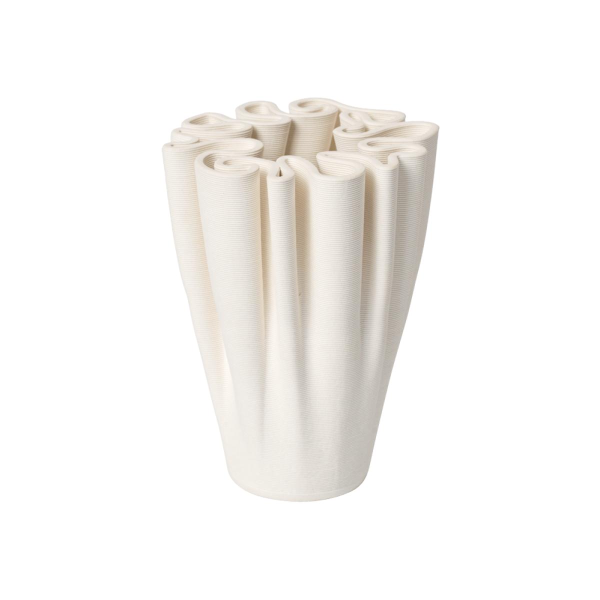 This vase is a great choice for adding a sculptural element to any space. I love its modern, understated design, which works well in minimalist interiors, but it can equally add texture to more eclectic settings. The off-white colour makes it versatile for pairing with colourful flowers or greenery, and its sculptural form can stand alone as a statement piece on a console or coffee table. For styling tips, I recommend keeping floral arrangements simple and natural, focusing on textures like grasses or wildflowers to complement its organic shape. It’s also perfect for taller stems or even as a holder for rolled-up towels in a bathroom, making it a functional yet stylish addition.