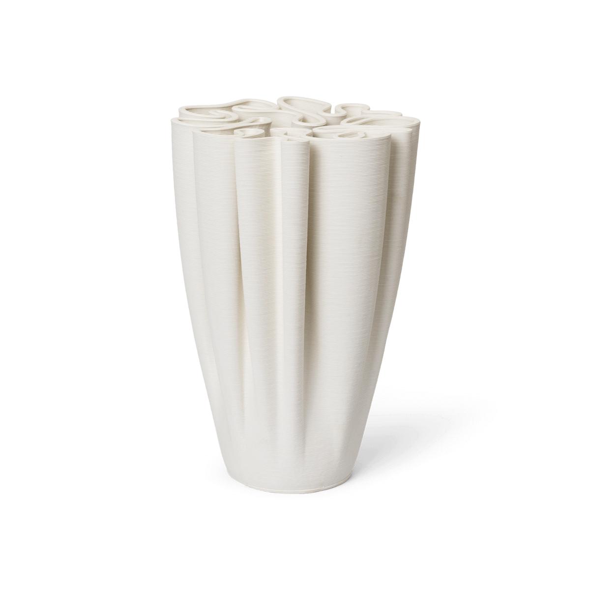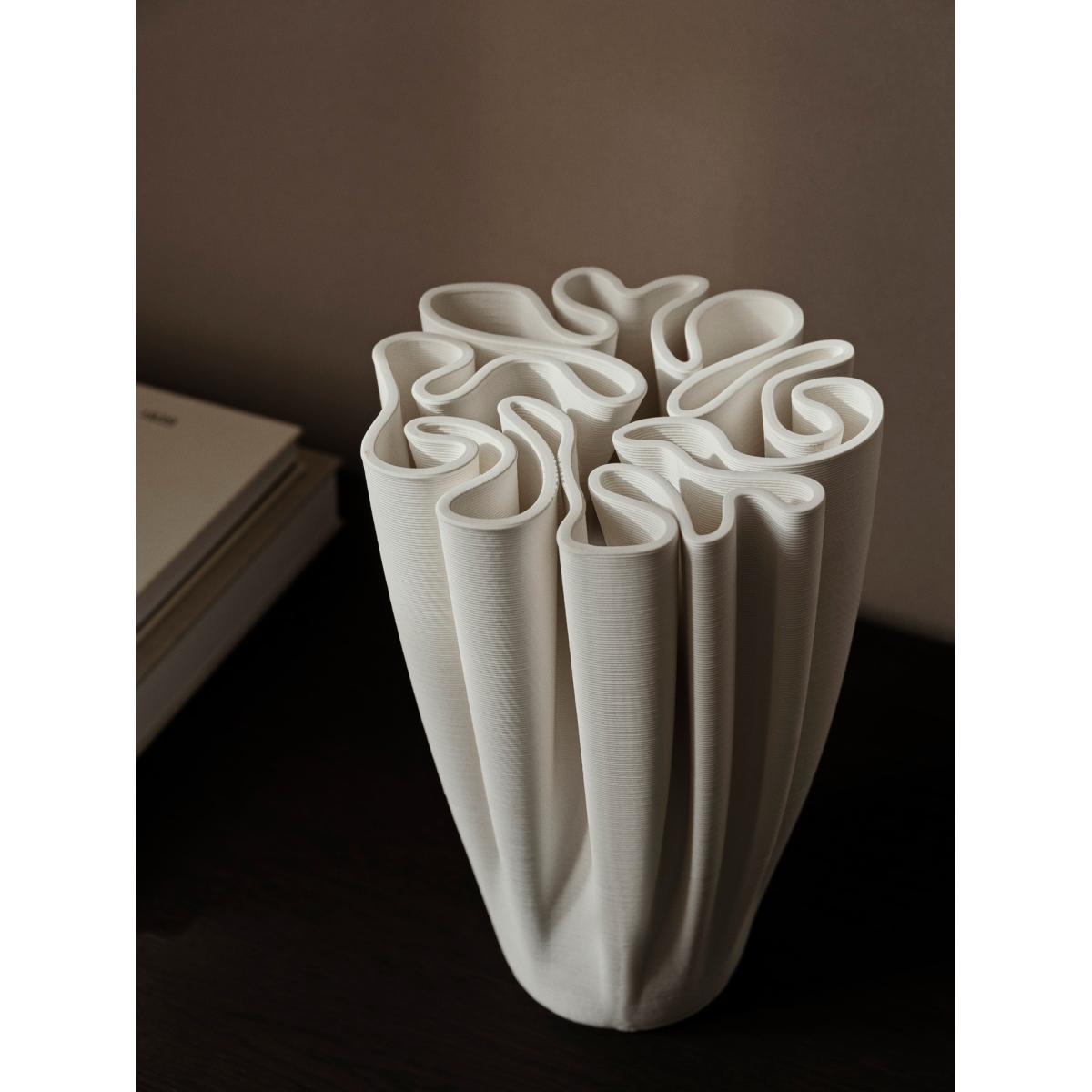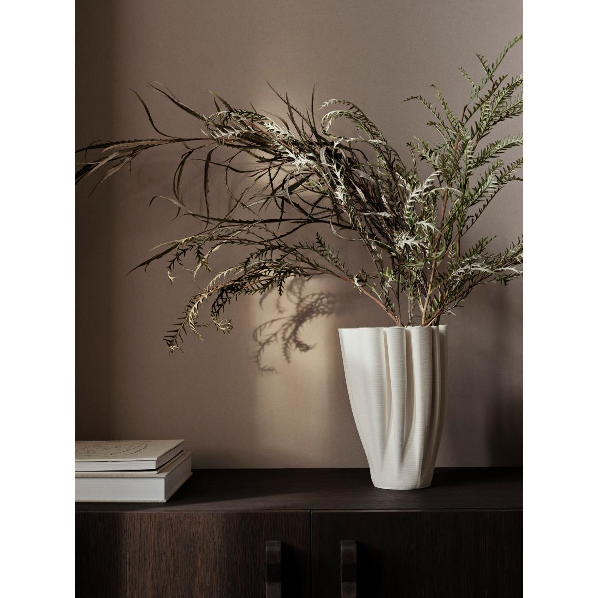 I really like this vase for its sculptural form and understated off-white tone, making it a versatile piece that complements a range of interiors. It works particularly well in minimalist or Scandinavian-inspired schemes, where its organic shape adds texture without overwhelming the space. When styling, I’d keep it simple-either with a few single stems or dried botanicals for a modern look, or leave it empty as a standalone art object. Practical tip: place it on a side table or as a centrepiece on a dining or coffee table to showcase its unique silhouette. Its understated elegance makes it a great choice for adding subtle visual interest to both contemporary and more relaxed, cosy interiors.