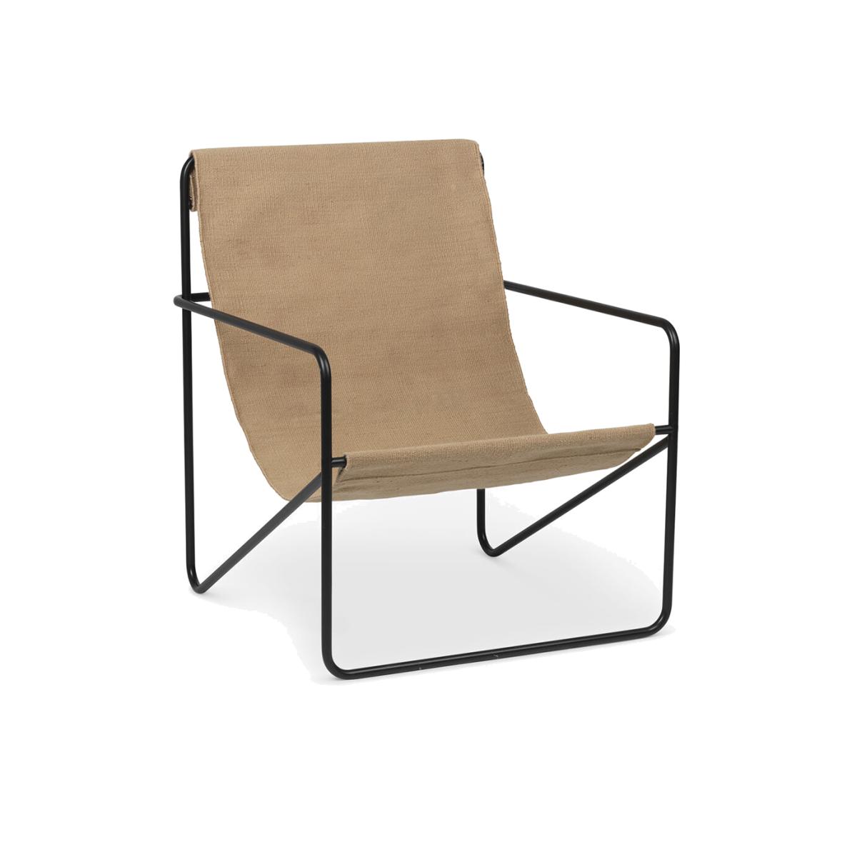 Give your interior a modernist update with the Desert lounge chair from ferm LIVING. Crafted from tubular powder-coated steel frame, in a choice of black or cashmere colours, it holds an interchangeable woven textile seat made from recycled plastic bottles. Suitable for use both indoors and out, the Desert lounge chair is the perfect place to sit back and relax. Key features: * Material: powder coated metal, fabric seat * Dimensions: W63xH77.5xD66cm * Hand-woven fabric seat * Made from recycled plastic bottles * Black coloured frame * Cashmere coloured seat * Suitable for outdoor use * Seat removable for washing at 30°C, dry flat