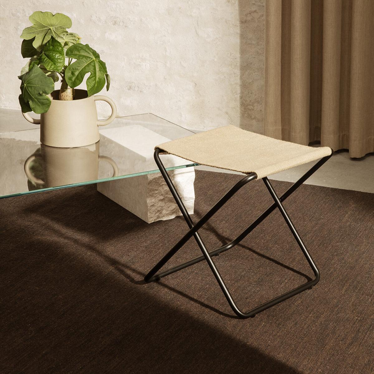 This stool is a great addition for contemporary and minimalist interiors, especially with its sleek black frame and natural sand-coloured seat that offers a subtle contrast. I love it because of its versatile silhouette-you can use it as extra seating, a plant stand, or even as a side table. Its compact size makes it ideal for small spaces or as an accent piece in a larger setting. For styling tips, try pairing it with natural materials like wood or woven textiles to emphasise its organic vibe, or use it to add a functional yet understated touch in bedrooms, living areas or even bathrooms. Its cross-frame design also makes it lightweight and easy to move around, which adds to its practicality in everyday life.