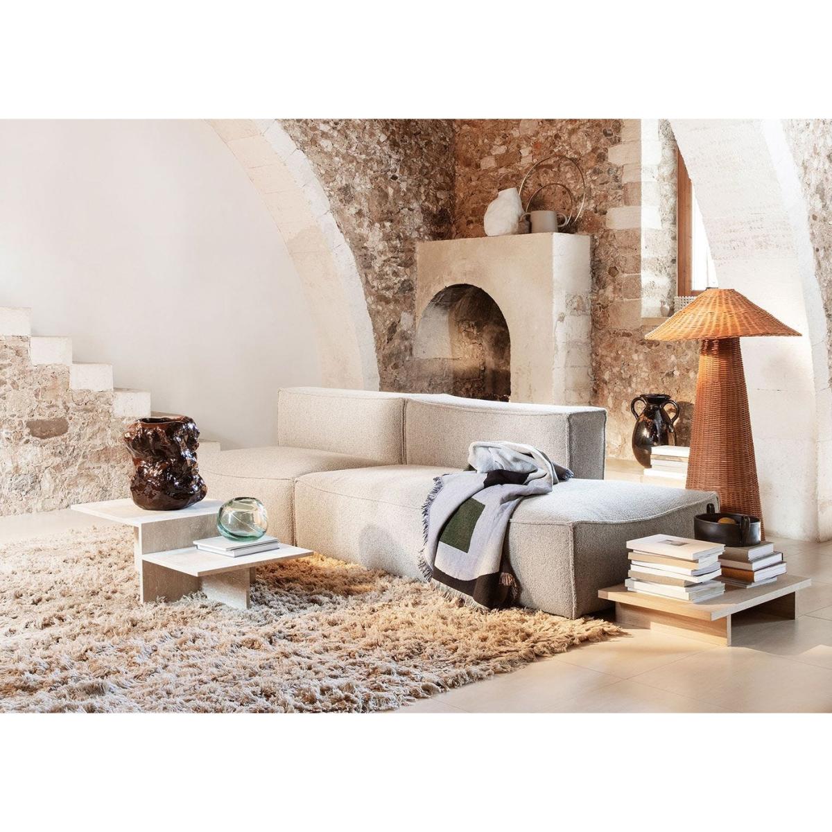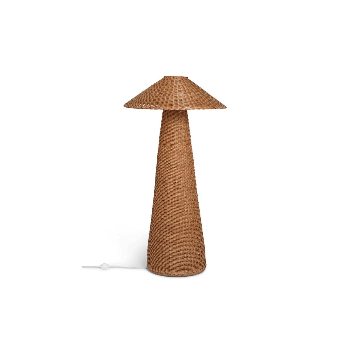 Hand-braided from natural rattan, our Dou floor lamp celebrates the lovely contrast between geometric shapes and textural material. The lamp features oversized dimensions and a soft light, while the shade allows for small glimpses of illumination through the braided rattan, and will add texture and tactility to your living space.
