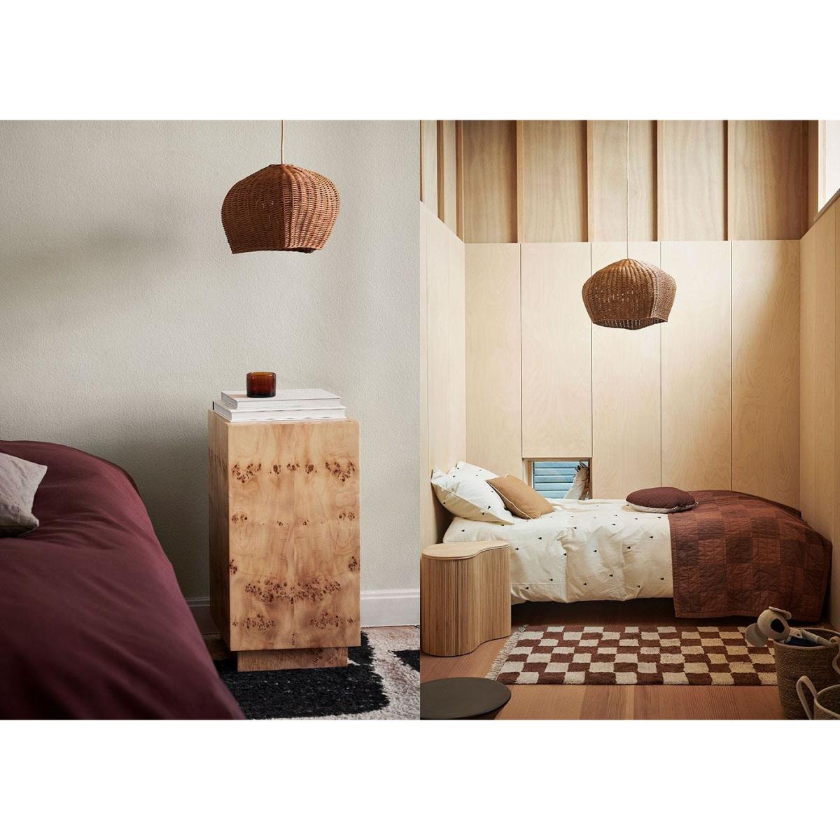 The Drape Lampshade is hand braided from natural rattan, boasting an organic and irregular shape that casts gentle, distinctive shadows. Creating a mesmerising ambiance, it serves as a natural, textural addition to any space. Use it as a captivating centerpiece throughout the home or as a soothing source of calming light in the kids' room.