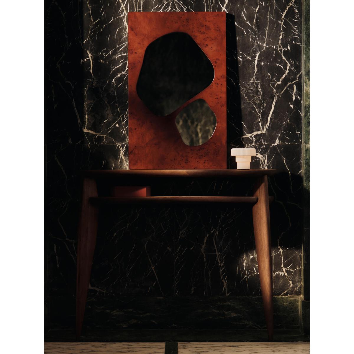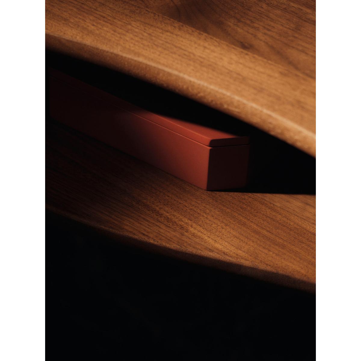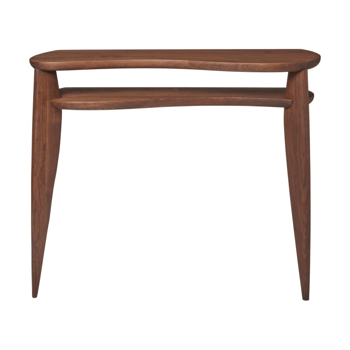 Feve console table 100x36x85 cm from Ferm Living is a console table in FSC®-certified solid European walnut with two gently curved shelves. The oiled finish highlights the wood's warm tone and brings timeless elegance to the hallway or entrance. The walnut console is narrow and airy, perfect for keys, mail or a beautiful vase, and has adjustable feet for stable placement even on uneven floors.
