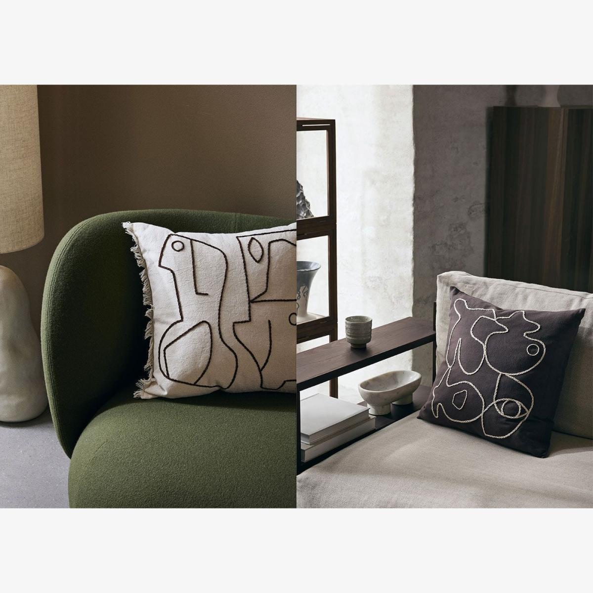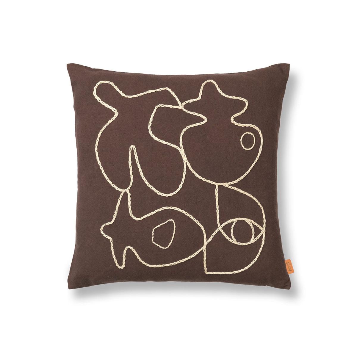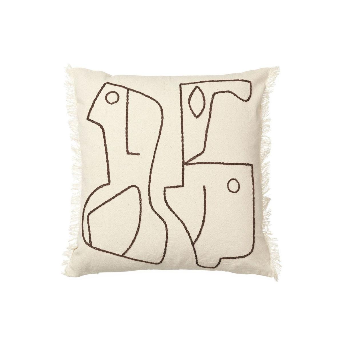 Crafted from soft organic cotton, the Figure cushion adds a bold statement to any contemporary space with a graphic motif in a ogg-white and coffee colourway, finished with hand-embroidered detailing. Perfect for styling up a bed or sofa.