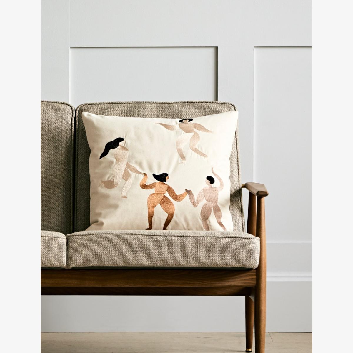 We love Ferm Living's 'Free' cushions with their beautifully embroidered imagery of the nude female form. Place this cushion on your bed or sofa, mixing in with a selection of our other cushions. A caramel colour is also available.
