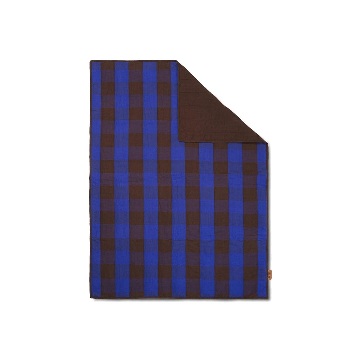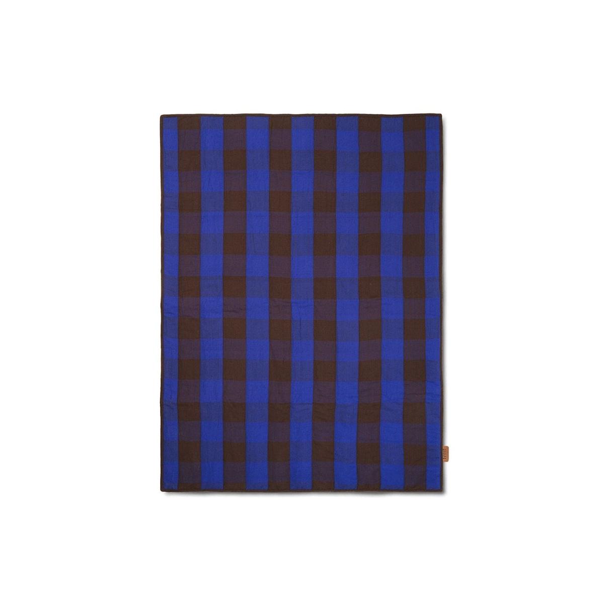 ferm LIVING Grand Quilted Blanket Choco/Bright Blue 120 x 170cm