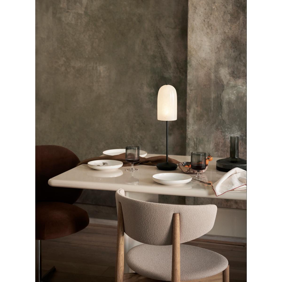 I really like this table lamp for its sleek, modern silhouette and the intriguing contrast between its black stem and translucent white shade. It works well in contemporary interiors, especially those with minimalist or Scandinavian themes, where its shape can serve as a subtle statement piece. For styling, try pairing it with neutral-toned side tables or desks to let the lamp’s design stand out, and consider placing it on a surface with textured or natural materials to balance its smooth, polished look. Its translucency adds a welcoming soft glow, making it ideal for workspaces or reading nooks. Practical tip: use an Edison bulb inside to enhance its warm, ambient light.