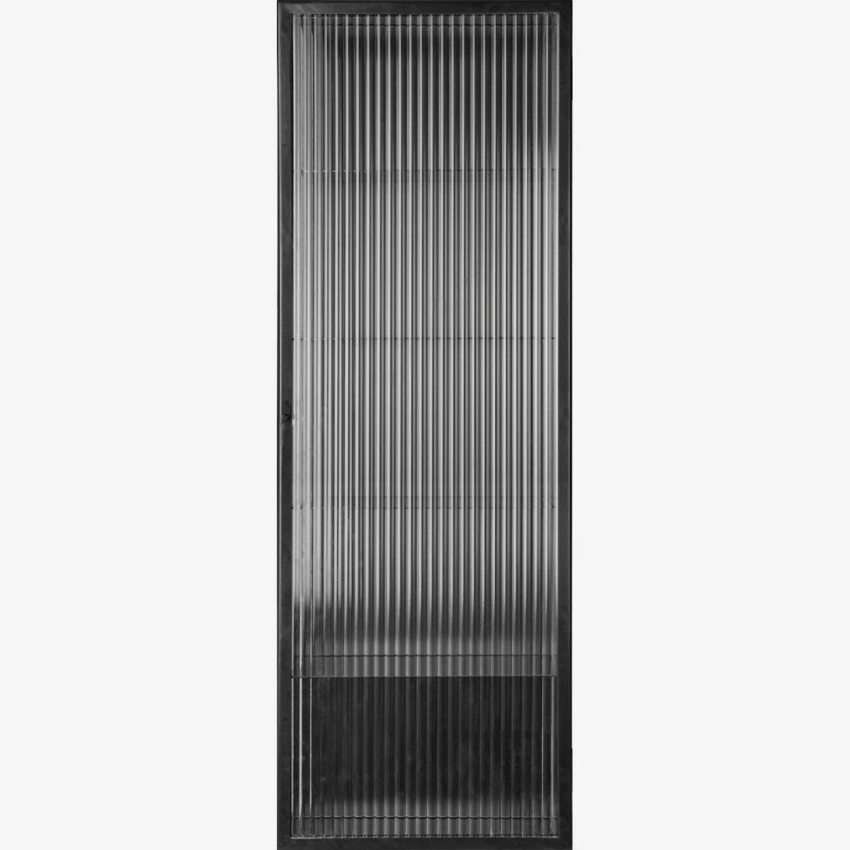 Haze wall cabinet 35x100 cm from Ferm Living is a tall, narrow cabinet in glass and iron that combines airiness with functional storage. The powder-coated finish gives an elegant impression and the reversible door makes placement flexible. Perfect for the bathroom, kitchen, or hallway when you want a neat, concealed storage solution.