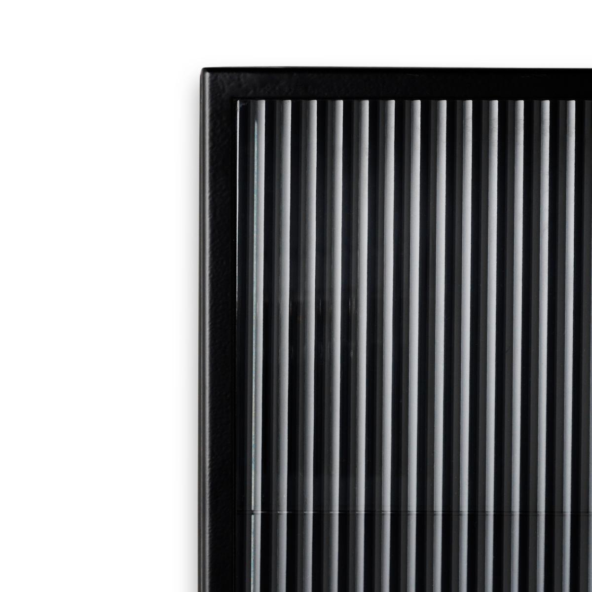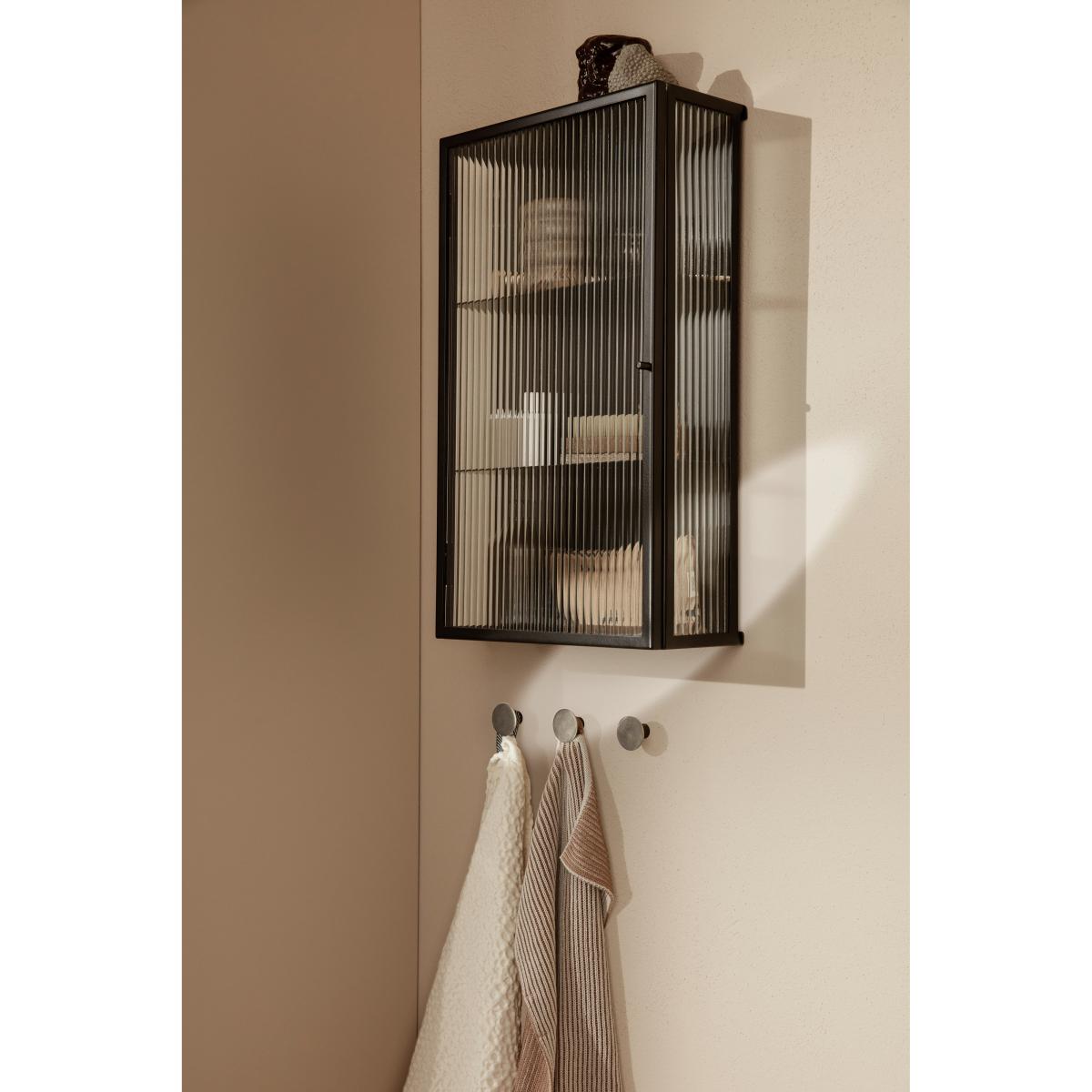 I’m a big fan of the Haze wall cupboard in black because its slim metal frame and fluted glass door add texture without overpowering a room. It works equally well in a minimalist Scandi kitchen or an urban-industrial hallway, grounding lighter colour schemes and picking up on dark accents. For styling, keep shelves uncluttered: mix a few cookbooks or design tomes with neatly folded linens or stacks of simple crockery. A small potted herb or sculptural jug brings life against the ribbed glass, and mounting it at eye level ensures easy reach and maximum impact.