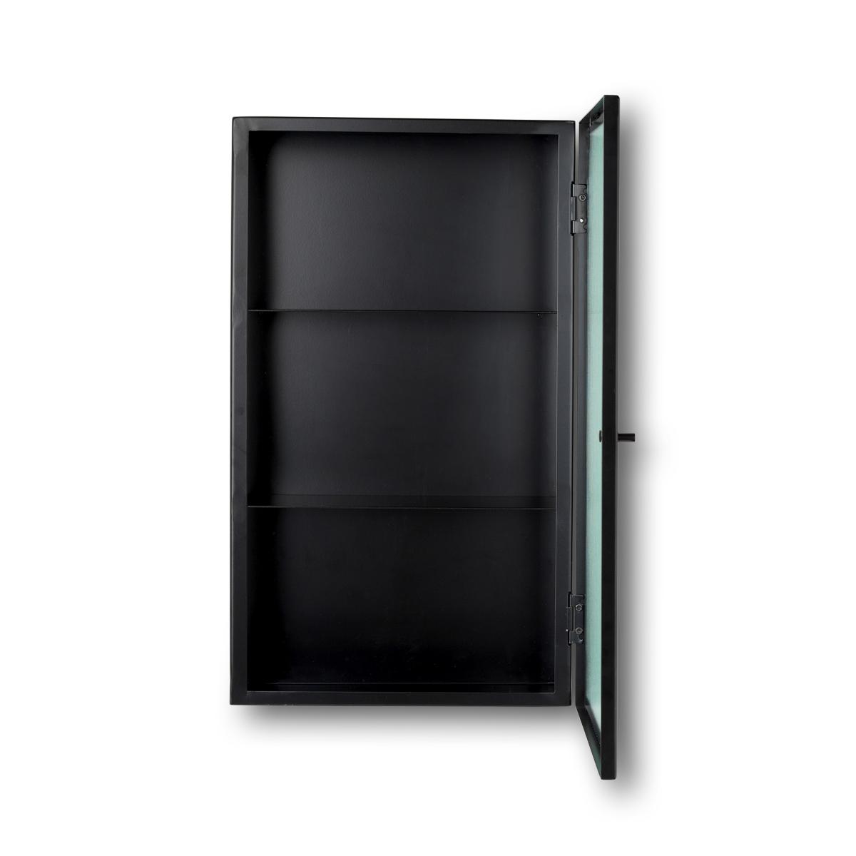 Haze wall cabinet from Danish brand Ferm Living is a wall-mounted cabinet with an industrial character, made of metal with a glass door. The wall cabinet has two shelves and is perfect for storing small items. Haze wall cabinet can, for example, be hung up in the bathroom for various beauty products, in the kitchen as a cool display cabinet, or in the hallway for keys and sunglasses.