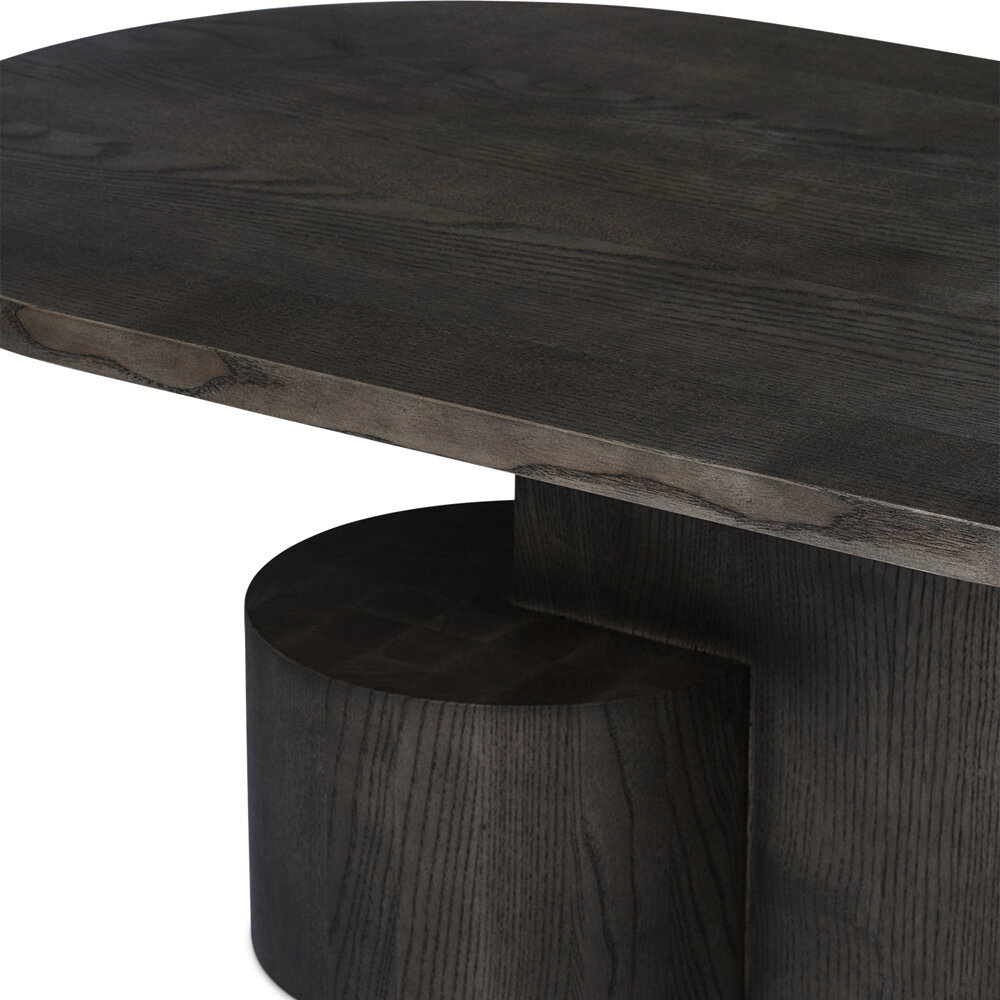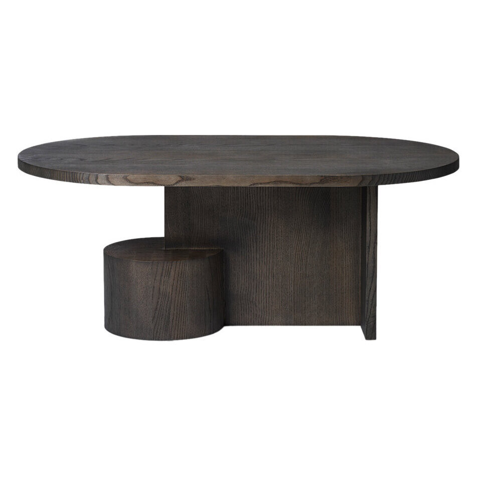 Compliment your living room with this Insert Coffee Table from Ferm Living. A sturdy yet sculptural piece, this solid ash table features multiple shapes. The oval top rests lightly upon two geometric joints that are anchored by a heavy, cylindrical base.