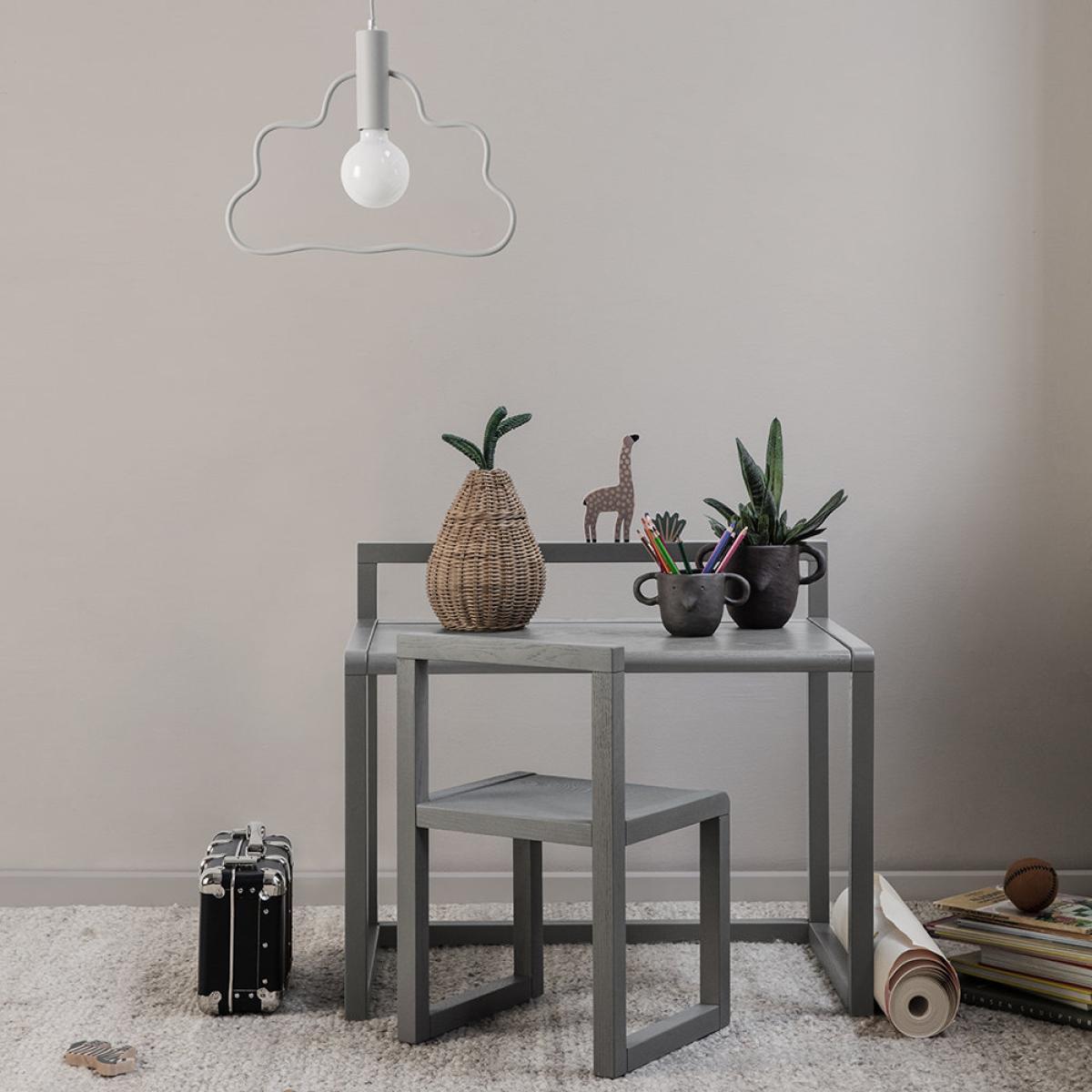 Add Scandinavian elegance to your little one's room with this Little Architect Desk from ferm LIVING. Crafted from ash veneer, this desk is beautiful simple in design and is in a neat rectangular shape. Finished with a high-set back, it is fabulous for young children to colour on or for slightly older children to complete their homework on. Key features: * Children's desk * Material: ash veneer * Dimensions: H60xW70xD45cm * Simple rectangular desk design * With a high-set back * Pale grey hue * Wipe clean with a damp cloth