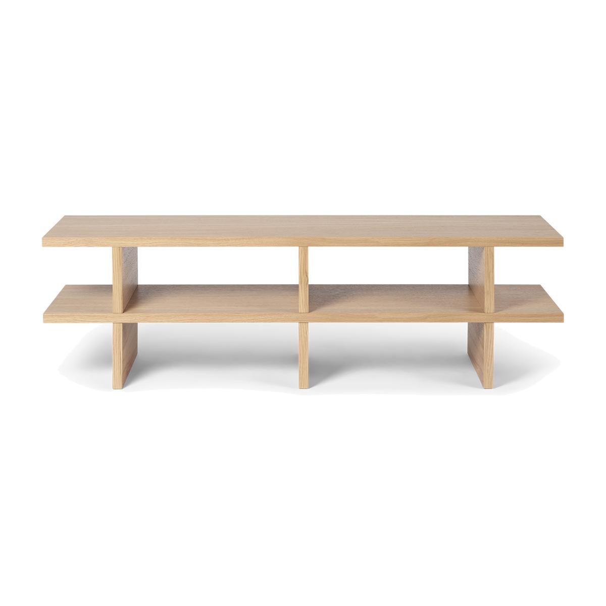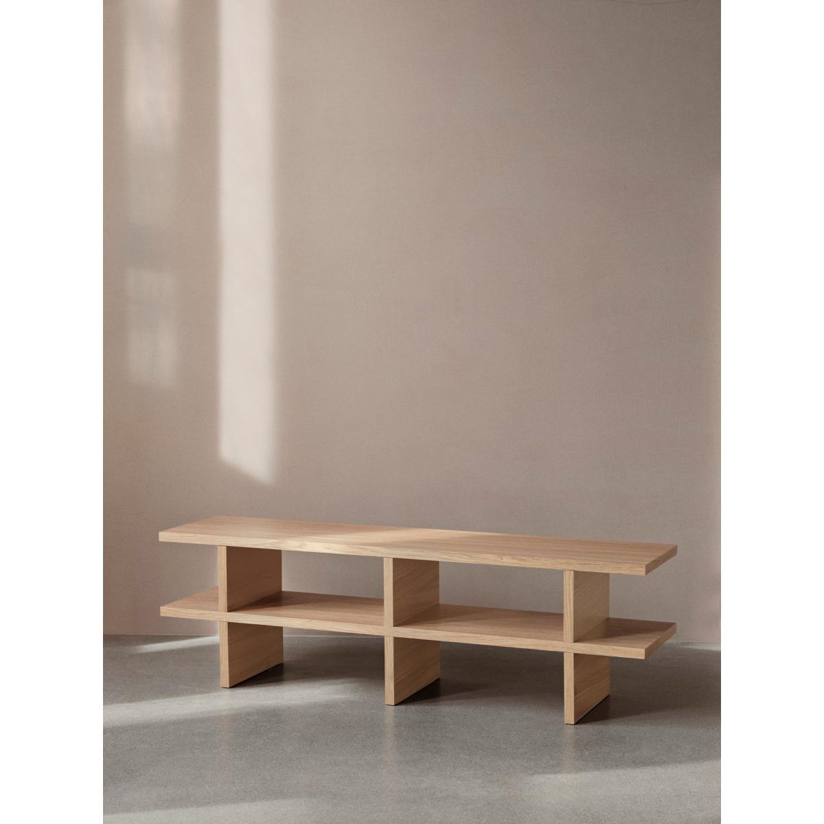 I’m a fan of the Kona bench for its simple, modular form and warm oak finish - it feels at home in Scandi-inspired, Japandi or contemporary schemes. Its two low shelves provide discreet storage for baskets, magazines or audio kit, while the top can double as seating in an entrance hall or as a media unit in a living room. To style it, balance a cluster of books on one side with a low plant or sculptural accessory on the other. Use woven or textile baskets in the compartments to keep smaller bits tidy, and introduce a contrasting rug or runner underneath to ground the piece. Its neutral veneer also plays well against deeper wall colours or textured wallpapers.