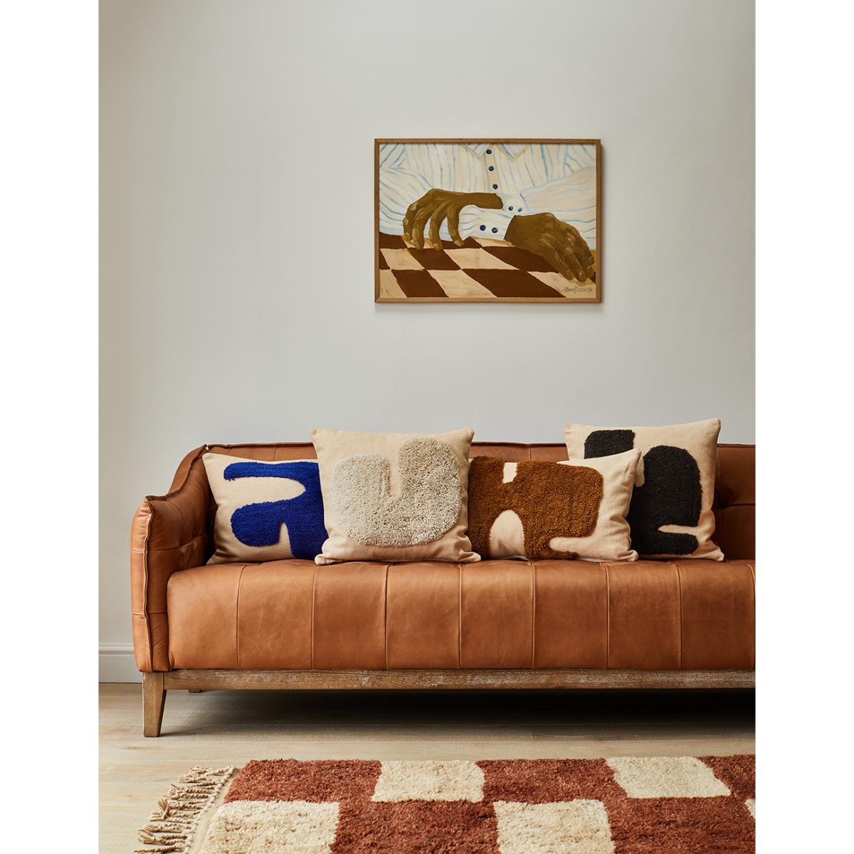 I love this cushion for its neutral tones and textured finish, making it versatile for both contemporary and Scandi-inspired interiors. It adds a tactile element that works well with other natural fabrics like linen and wool. The cream and sand shades make it ideal for softening darker or more industrial spaces, while its subtle texture brings depth without overwhelming. When styling, I’d recommend pairing it with similarly muted tones or mixing it with patterned cushions for a layered, cosy look. It’s a practical choice for sofas, beds, or armchairs, adding visual interest while remaining understated and warm.