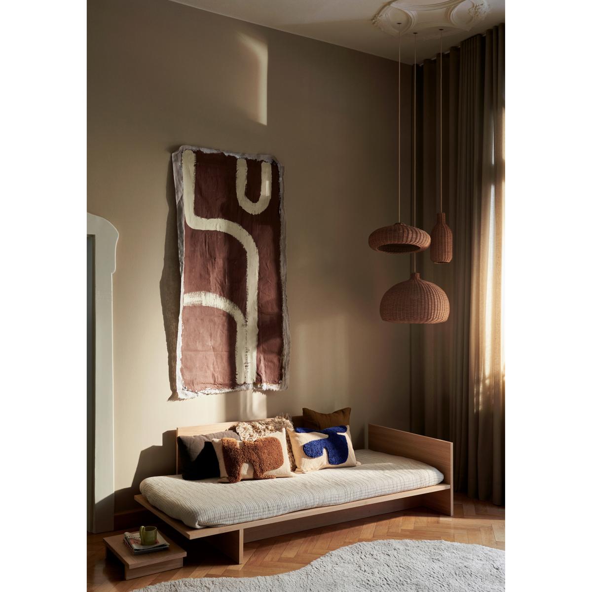 I love this cushion for its bold, graphic design and versatile colour palette. The sandy neutral base makes it easy to incorporate into a variety of interiors, from Scandi minimalism to boho layered schemes, while the bright blue adds a playful pop of colour. It's particularly effective on neutral sofas or beds to introduce a bit of visual interest without overwhelming the space. For styling tips, try pairing it with softer textured cushions or throw blankets to balance the bold graphic, or arrange it with other cushions in coordinating colours for a curated look. Its manageable size makes it great for pairing with larger cushions or as a statement piece on a lounge or bed.