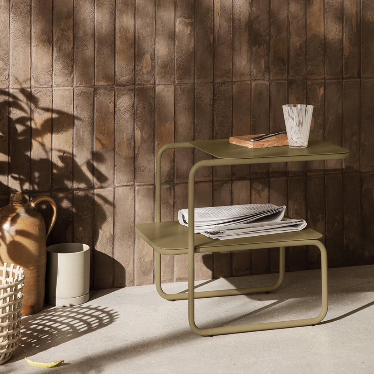 Add intrigue to your interior with this Level side table from ferm LIVING. Crafted from powder coated steel, it features an asymmetrical profile and two-tier design for extra storage. Available in three stylish colours with a smooth matte finish, this table is perfect for using both inside and out.