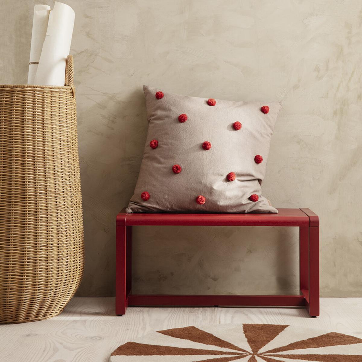I love this little bench for its bold Poppy Red hue, which makes it a versatile statement piece in both modern and traditional interiors. It works beautifully in kid’s rooms for seating or as a small table, but also doubles up as a colourful entryway or hallway perch. Practical styling tips include pairing it with neutral tones to let the colour pop, or layering with cushions and baskets for a cosy, lived-in feel. Its simple, clean lines make it suitable for minimalist spaces, but it can also add a playful touch to eclectic interiors. Overall, it's a functional piece that combines practicality with a vibrant design twist.