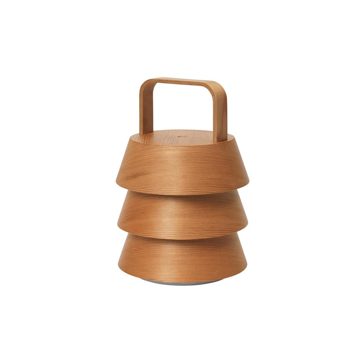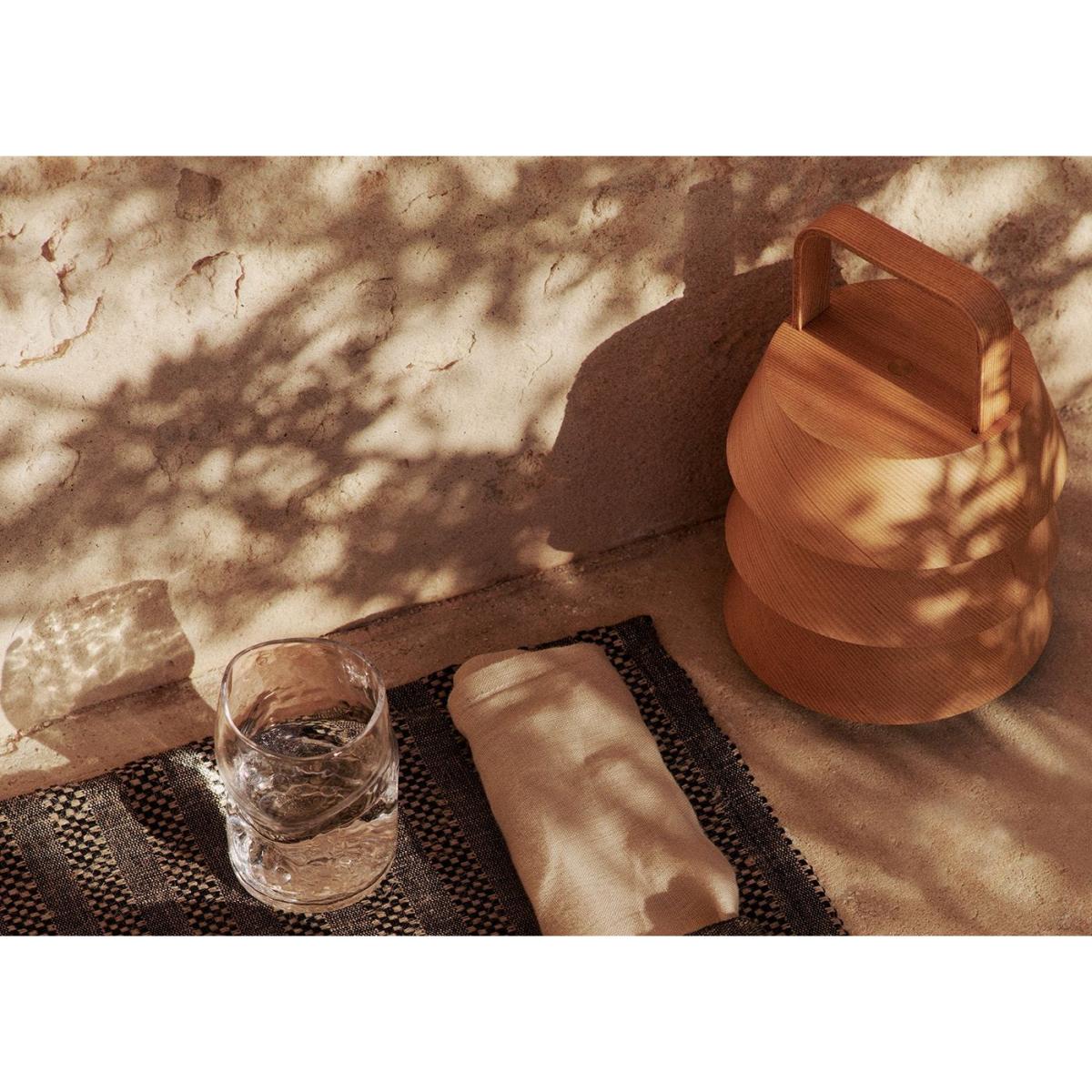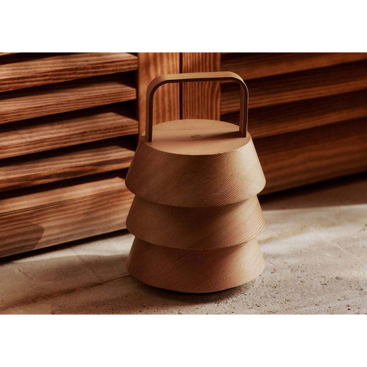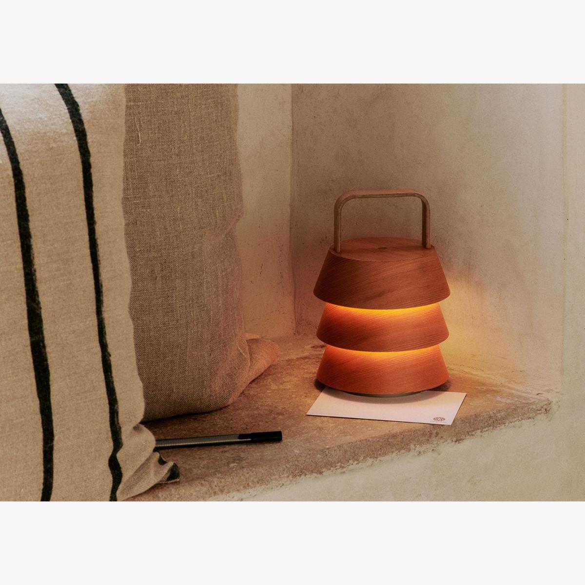 Drawing inspiration from architect Jørn Utzon’s family home in Mallorca, the Luver Portable Lamp combines elegance and portability. The stacked structure of three tapered Douglas fir shades showcases the lamp’s precise craftsmanship. A steam-bent wooden handle adds a crafted, human touch, while the lamp’s design scatters light to create a cosy atmosphere. With a touch dimmer and three light settings, it’s perfect for both indoor and dry-weather outdoor use.