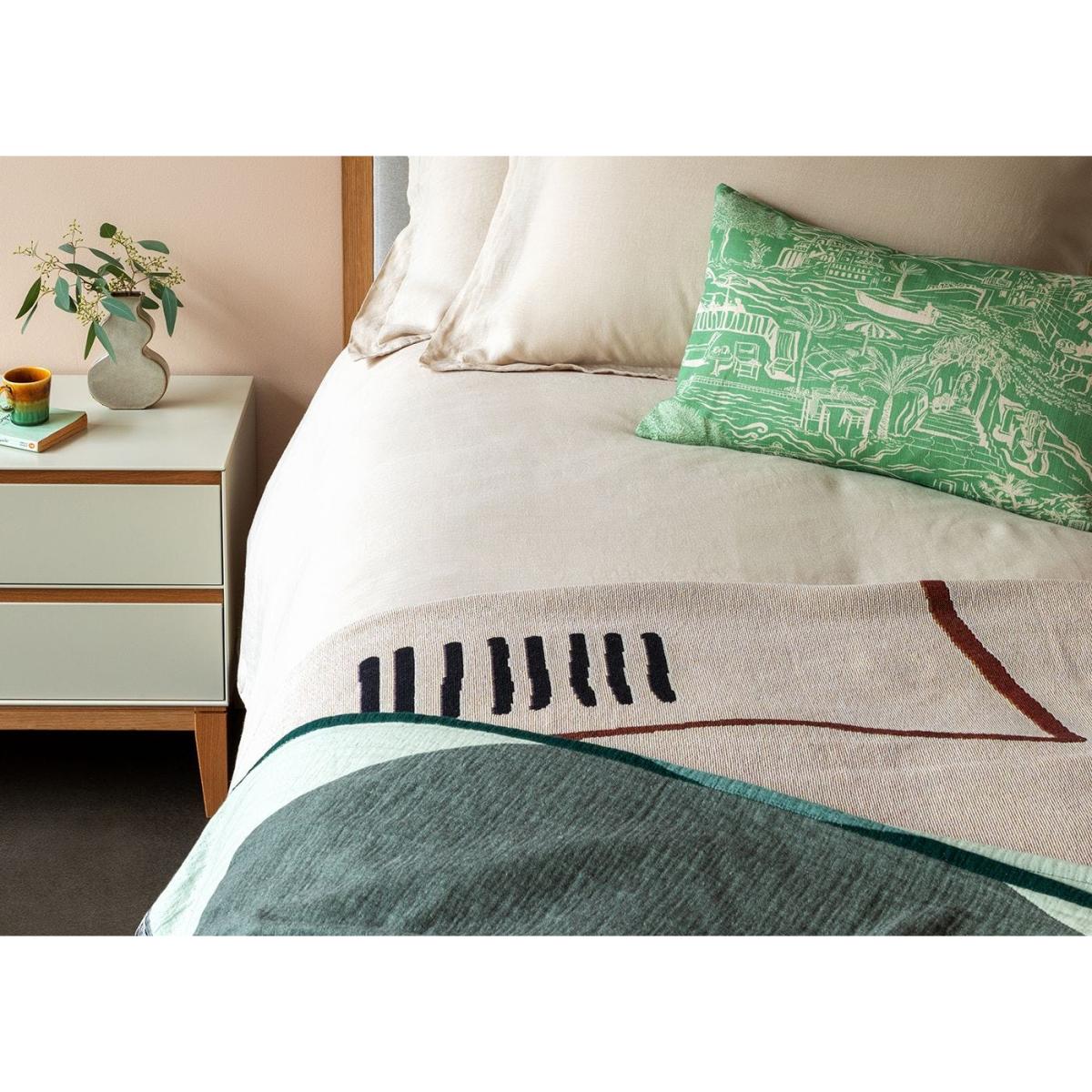 The Mirage Blanket in Off White reimagines the mystical beauty of desert landscapes, transforming natural elements into abstract, flowing forms. Part of the Mirage series, this jacquard-woven throw is crafted from 100% cotton, offering both comfort and artistic expression. Elegant tapestry weaving creates intricate textures, while fringed edges add a touch of relaxed sophistication. Perfect for draping over a sofa or bed, the Mirage Blanket brings warmth, texture, and a sense of artistic serenity into any space.
