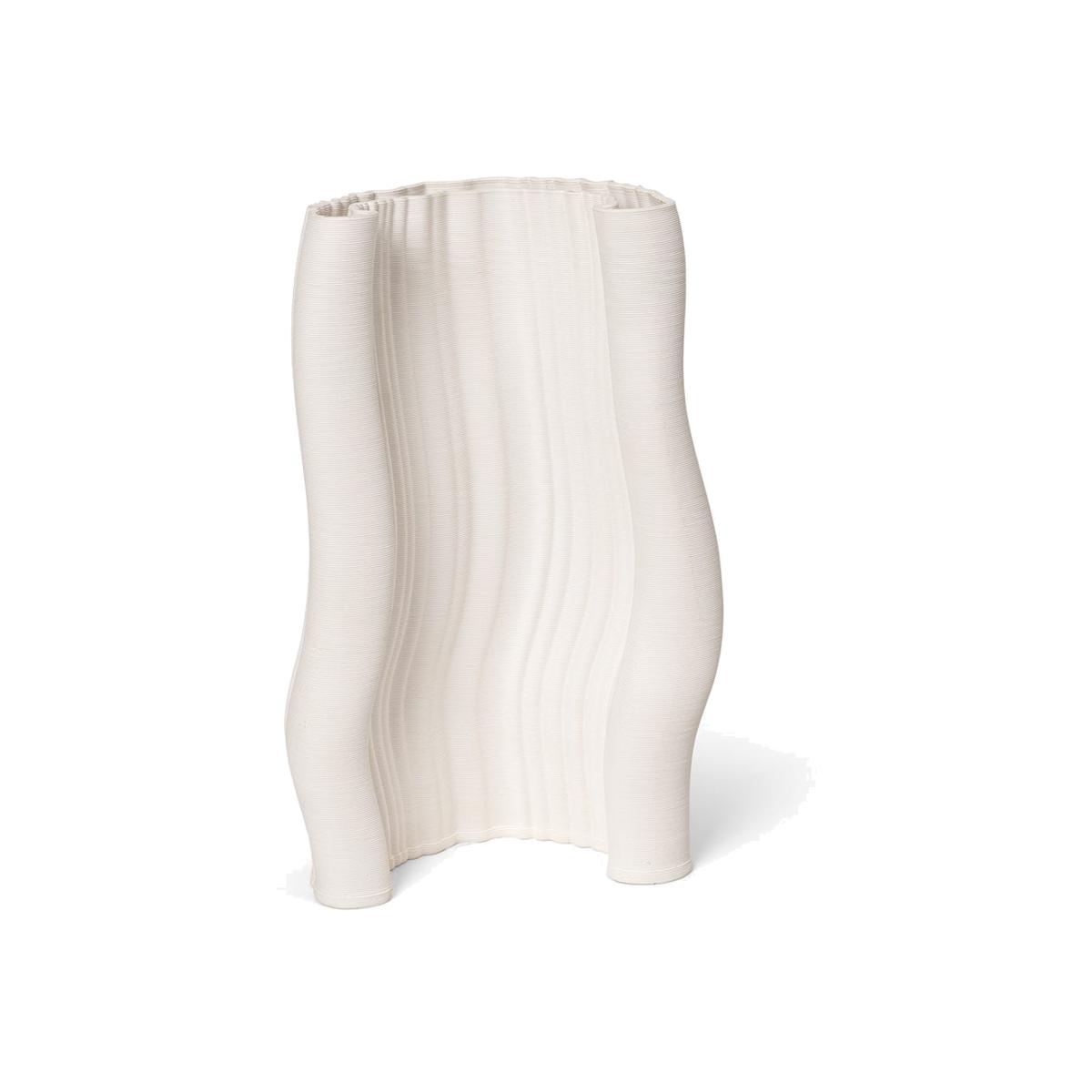 The Moiré Vase is inspired by the graphic effect that occurs when the organic and geometrical clash. The vase has been created through a process of 3D printing clay, resulting in thin layers that have gradually formed a subtle pattern across the body of the vase, revealing its digital origins.