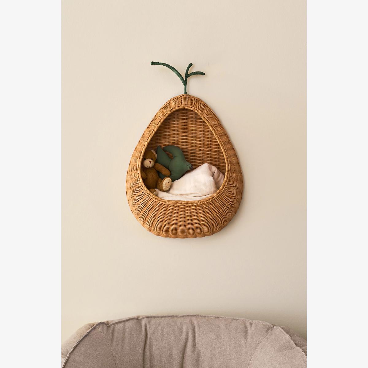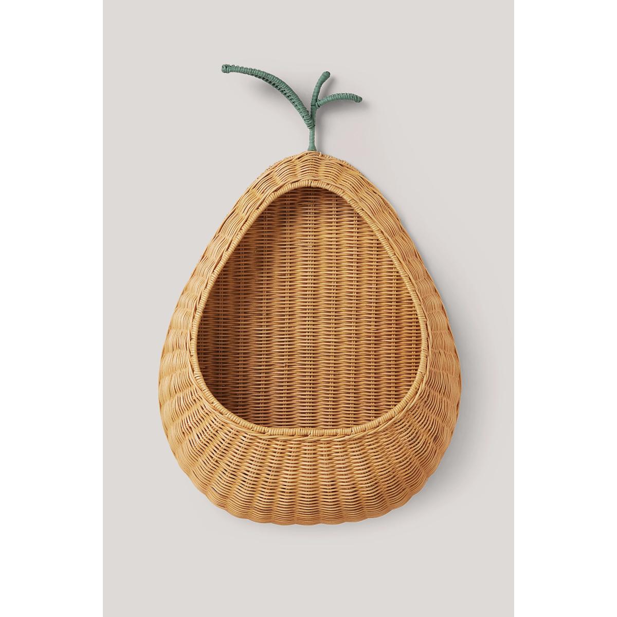 Meticulously crafted from durable rattan and shaped to a playful pear, this wall basket is a fun storage solution, perfect for books, toys, or other small items * By Ferm Living * Braided Rattan; Iron structure * Wipe with damp cloth * Imported