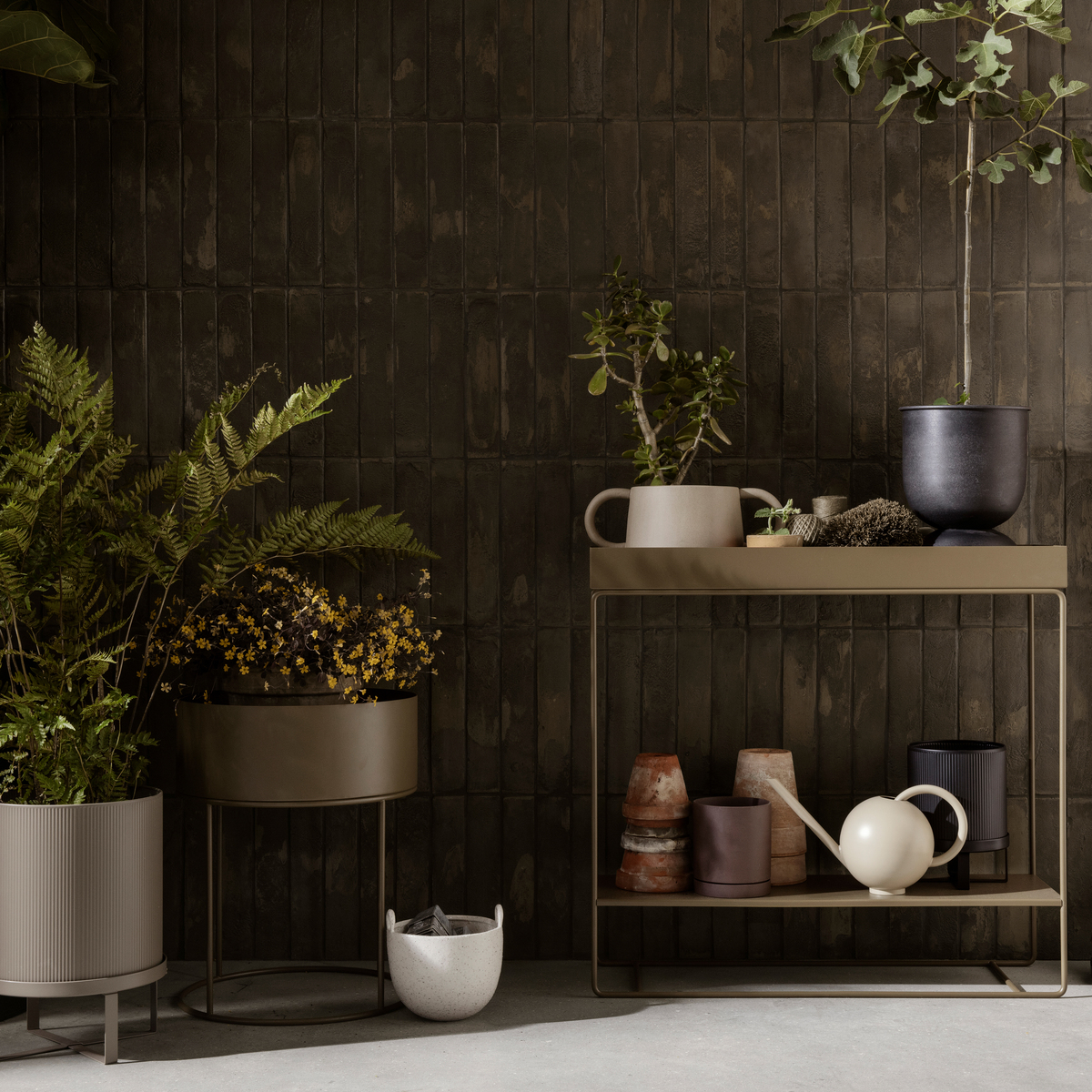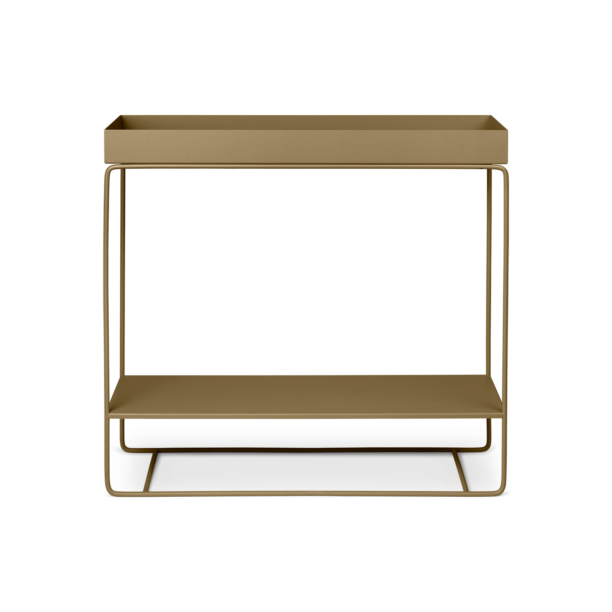 This console table takes the immensely popular Ferm Living plant box to a whole new level. The table bears the same stylish yet minimalist lines that adorn the plant box, here arranged in a taller and higher profile. A flush shelf sits at the bottom while a tray with raised edges is mounted on top. Use the lower shelf to create a gorgeous display with high vases or other large decorations. The upper tray is perfect for smaller decor such as potted plants or an arrangement of books and trinkets to create a striking still life. The console table can also be used outside, making it ideal for housing plants and greenery on the terrace or balcony.