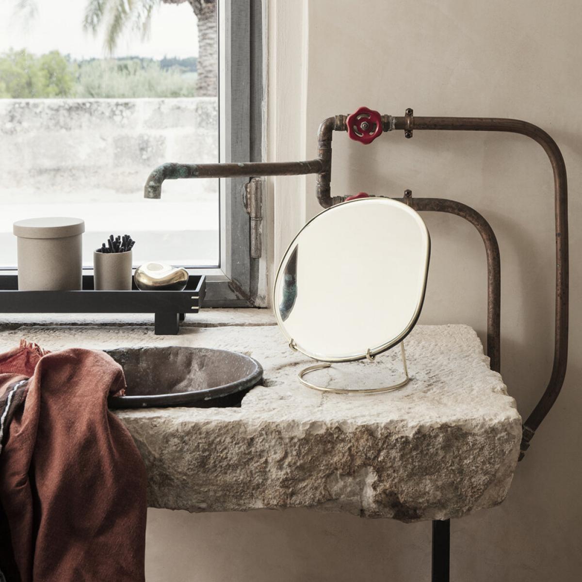 I love this Pond Table Mirror for its sleek, minimalist design and warm brass finish, which adds a touch of elegance to any space. It works particularly well in contemporary and Scandinavian interiors, where clean lines and organic materials are key. As a styling tip, place it on a dressing table or atop a bathroom vanity to create a functional yet stylish focal point. For practical use, consider positioning it near natural light to enhance its reflective qualities, and keep the brass finish polished to maintain its sophisticated look. It’s versatile enough to also stand on a shelf or side table, making it both a decorative and practical piece in your home.