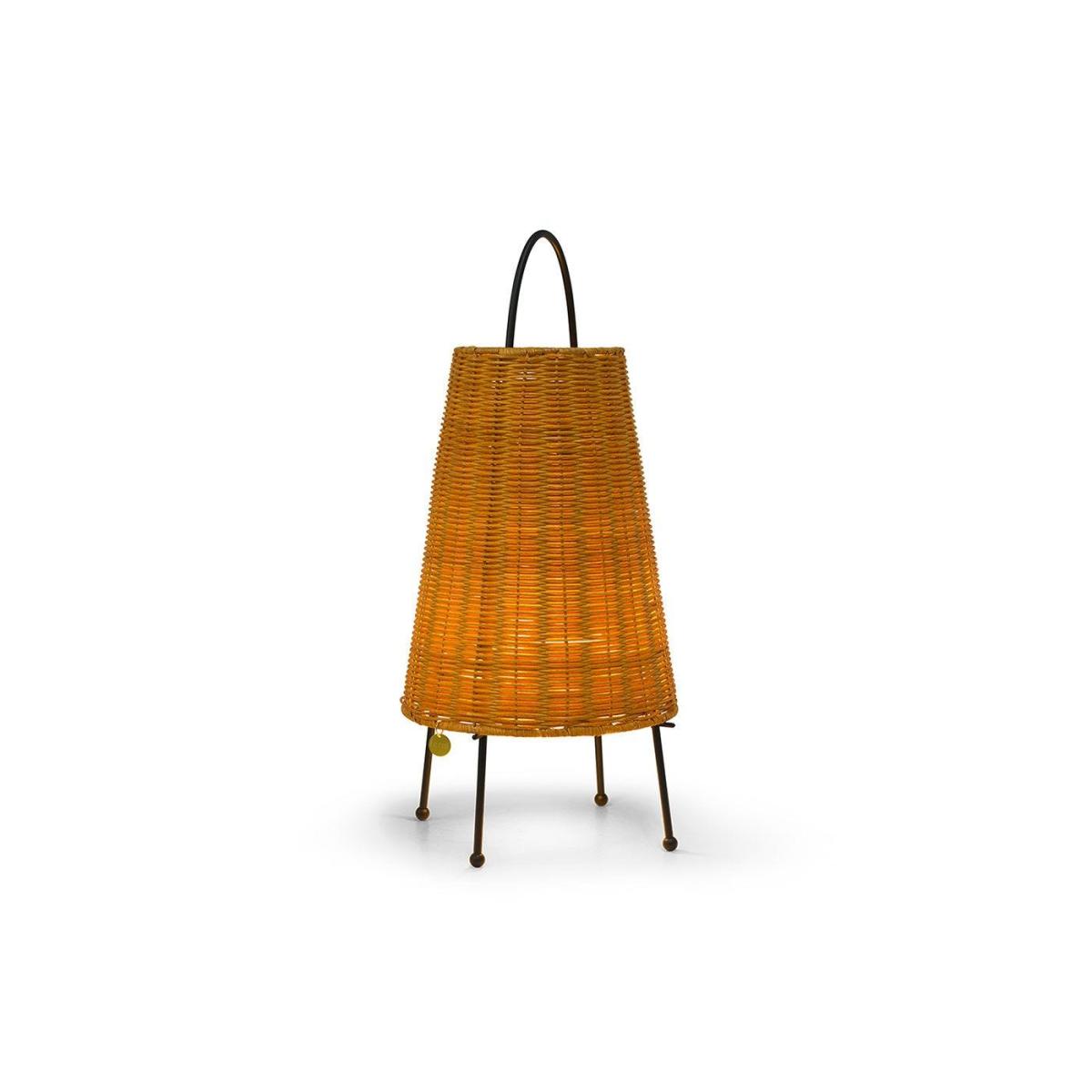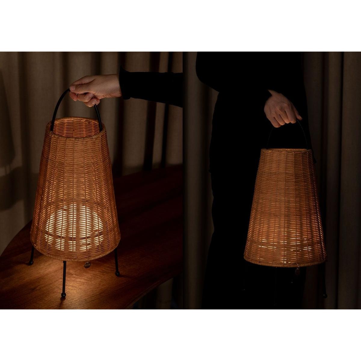 Reinterpreting the form and function of a lantern, the Porti Braided Lamp is a versatile and portable lamp that can be used in a multitude of settings. Emitting a soft and warm light, the lamp features a braided rattan shade that rests on a slender metal frame, resulting in a charming mix of tactility and sleekness. The lamp base features a hover touch function that enables you to control the light intensity as well as turn the lamp on and off with just a gentle touch or tap, and adjustable feet that help you to align the lamp on uneven surfaces.
