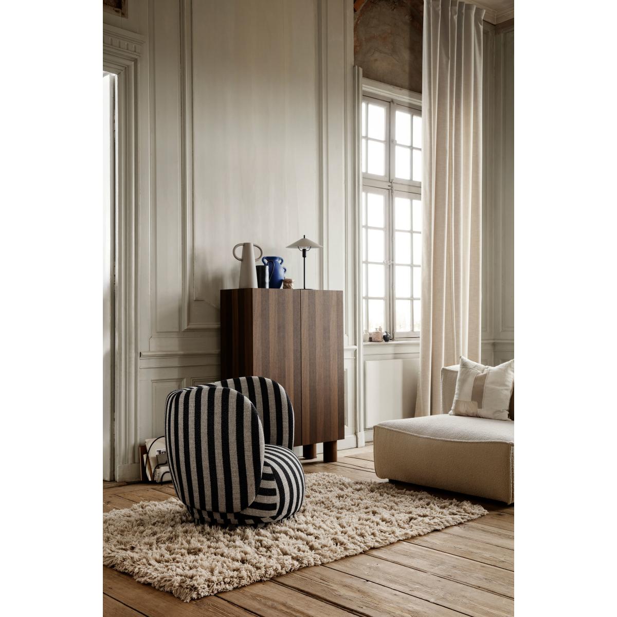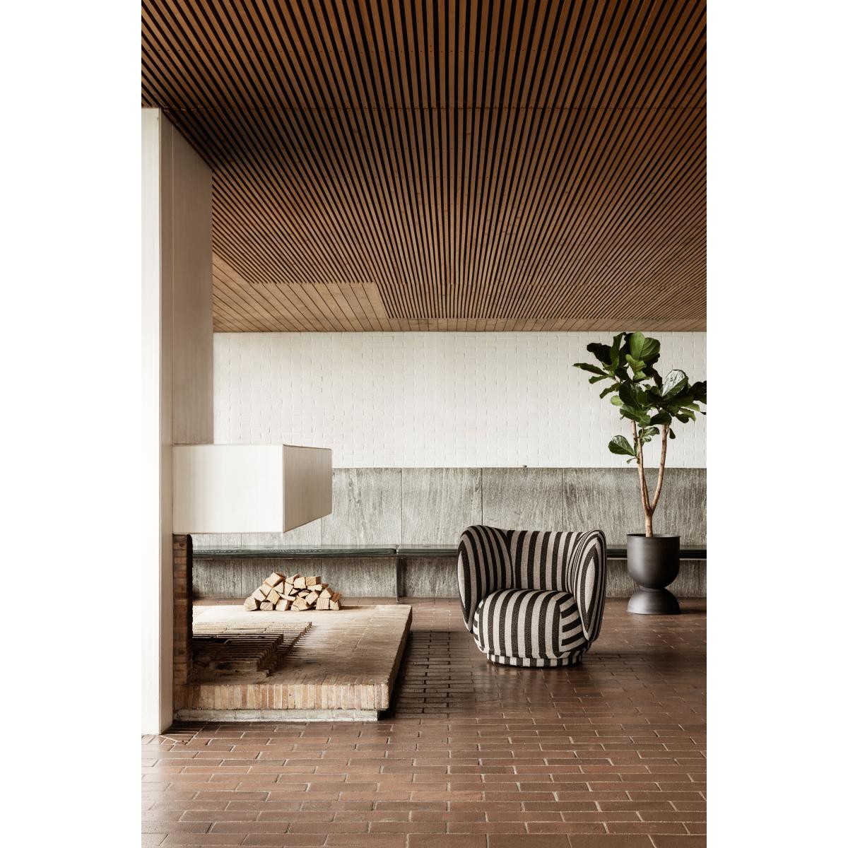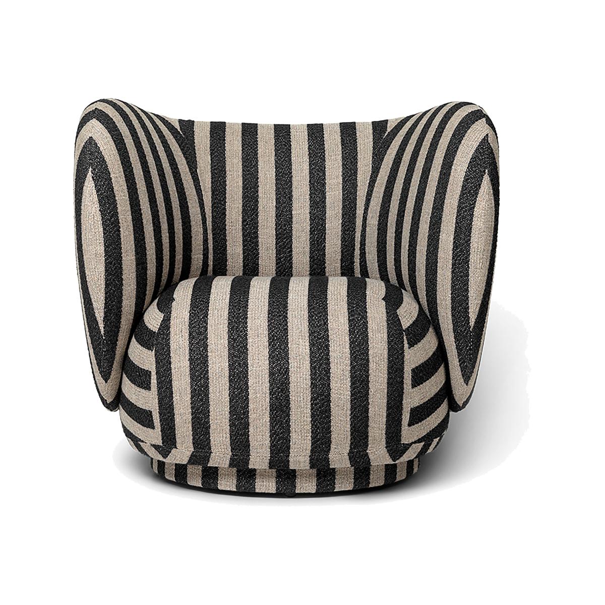 The Rico lounge chair offers a bold yet versatile look, making it an excellent addition to both contemporary and eclectic interiors. I love its striking striped pattern combined with the neutral Louisiana sand and black colour palette, which can add visual interest without overwhelming the space. It's a great choice as an accent piece in a living room, bedroom, or even a sophisticated reading nook. When styling, consider pairing it with simple, solid-coloured cushions that pick up on its hues or placing it alongside minimalist furniture to let its unique design stand out. It's practical for creating a cosy corner, and its rounded shape fosters an inviting atmosphere, making it perfect for lounging or casual conversation.