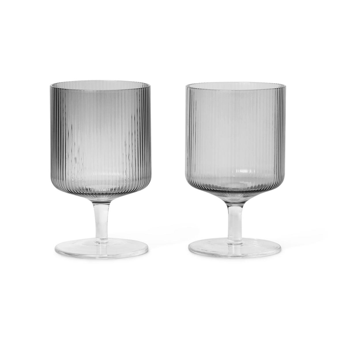 ferm LIVING Ripple Smoked Grey Wine Glass Set of 2 - Heal's UK Furniture