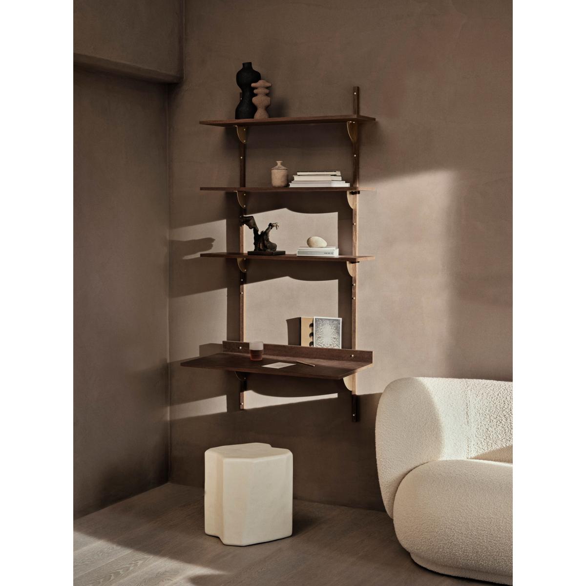 I’m particularly drawn to the Sector desk’s pared-back, wall-mounted design - the smoked oak top paired with subtle brass fixings brings a warm yet contemporary edge that works equally well in a compact city flat or a home office. Its slim profile saves floor space and looks especially at home in Scandi-inspired interiors or any scheme that favours clean lines and natural materials. For styling, keep the surface uncluttered: a low-profile task lamp, a small planter and a simple ceramic pen pot add function without overwhelming the desk’s sleek form. Above it, a picture ledge or narrow shelf can display artwork or books, while under-desk cable organisers will preserve that neat, floating appearance.