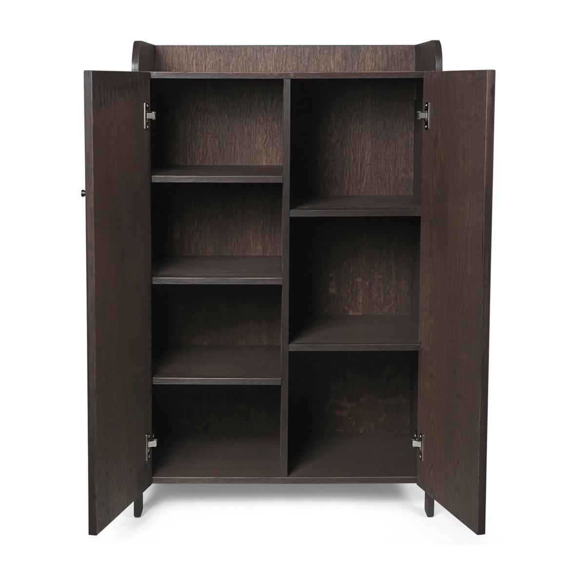 I love this cabinet for its sleek design and the rich dark stained oak finish, which adds warmth and a touch of sophistication to any space. It works particularly well in modern, Scandinavian, or even industrial interiors, where its clean lines provide a contemporary edge. To style it effectively, consider pairing it with minimal decor and natural materials like woven baskets or ceramics on top, to let the wood grain stand out. Practical tips include using it for both storage and as a statement piece in living rooms, dining areas, or bedrooms, keeping its surface free of clutter to emphasise its elegant simplicity.