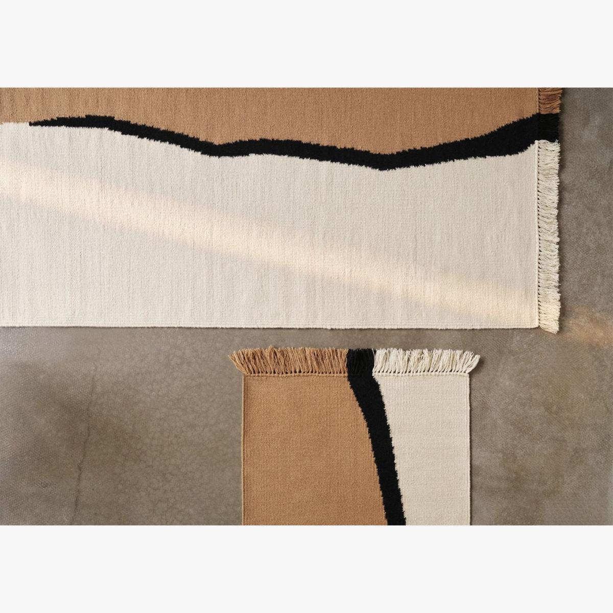 Drawing inspiration from the intricate formations found in geology, the Soil Kelim Runner presents a three-colour design in natural tones with offset and irregular stripes for visual appeal. Woven by hand and crafted from 100% wool, the runner features a blend of soft New Zealand wool that offers a luxurious feeling underfoot. Fringed edges enhance its soothing tactile qualities, making the Soil Kelim Runner a beautiful and comforting addition to any space.