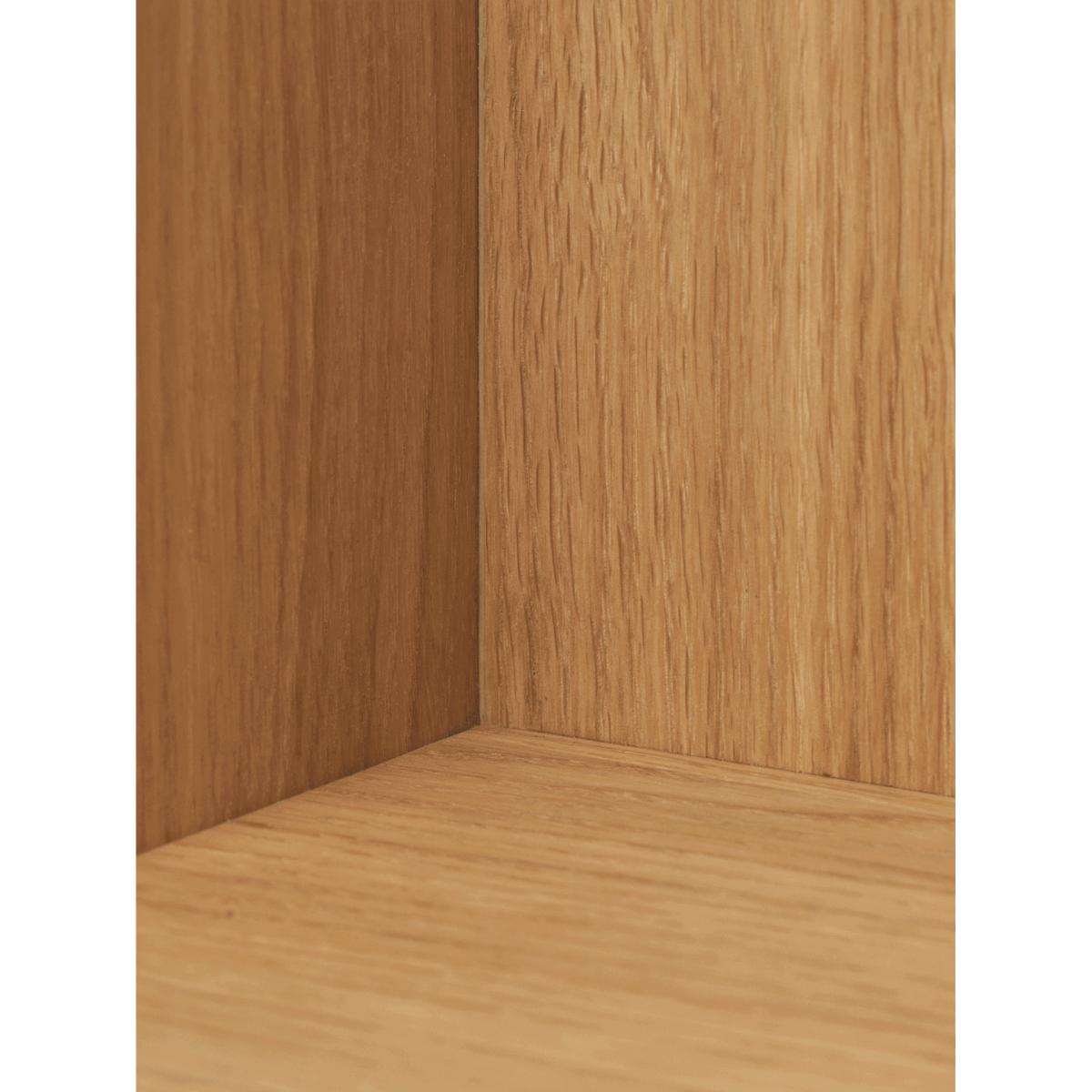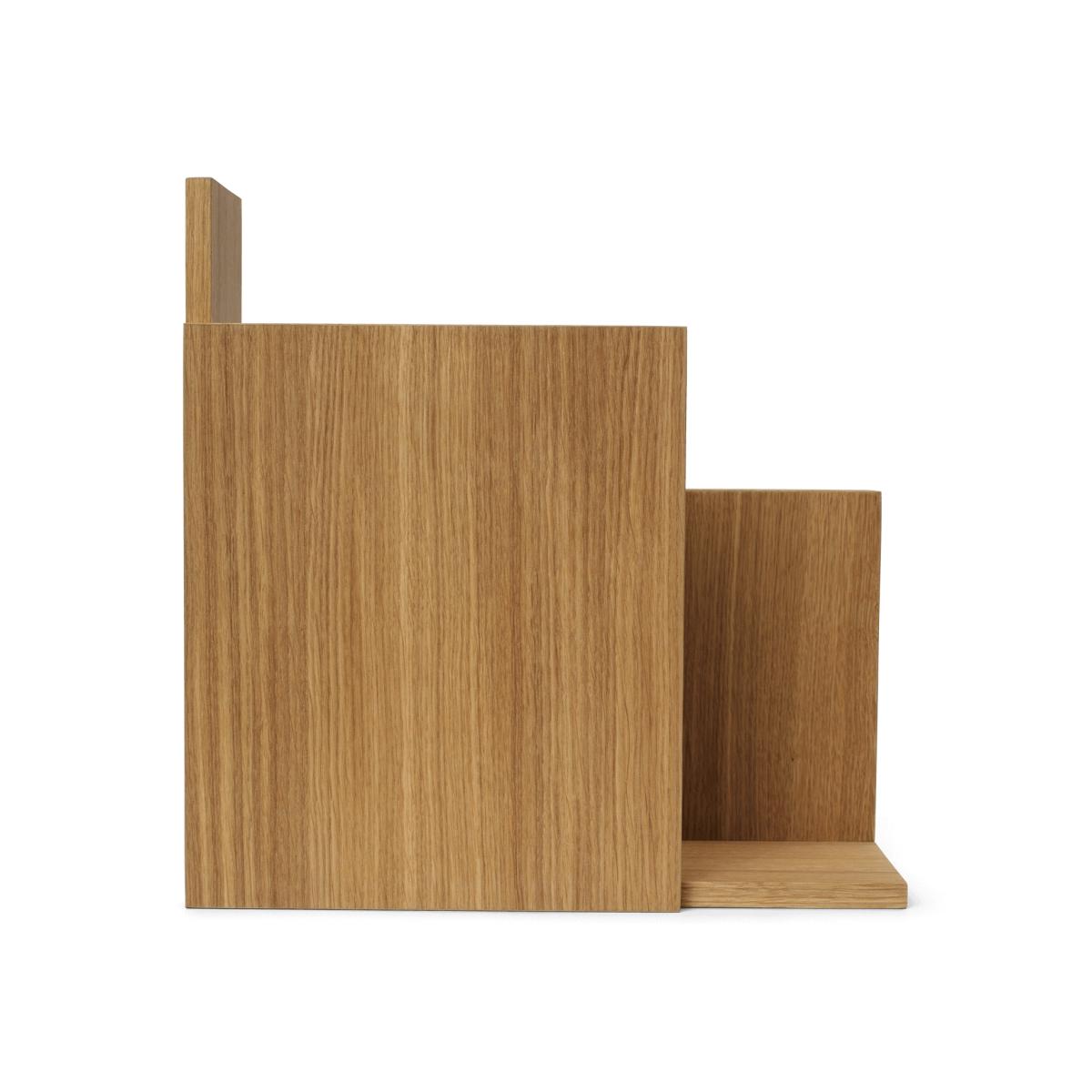 I love the ferm LIVING Stagger shelf square for its sleek, minimalist profile and warm oiled oak finish, making it a versatile piece that suits both contemporary and Scandi-inspired interiors. Its clean lines and geometric design create visual interest while maintaining functional simplicity. This shelf works particularly well in living rooms, bedrooms, or home offices where it can be styled with curated books, small plants, or decorative objects to add personality without clutter. For styling tips, try pairing it with contrasting items like ceramic vases or metallic accents to highlight its natural wood tone, or keep the look cohesive with other oak or wooden accessories to create a seamless, warm aesthetic.