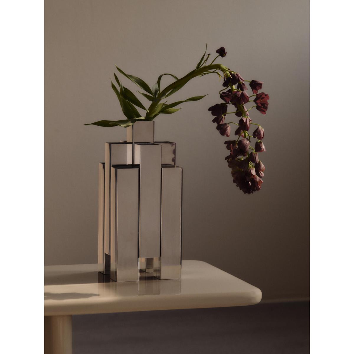 Tessera vase 3x3 from Ferm Living is a sculptural vase with a distinct architectural character. Made of mirror-polished stainless steel, it captures light in a lively way and becomes a focal point in the room. Equally beautiful with flowers as it is standing on its own on a table or shelf. A harmonious combination of form and function that adds an artistic touch to the interior.
