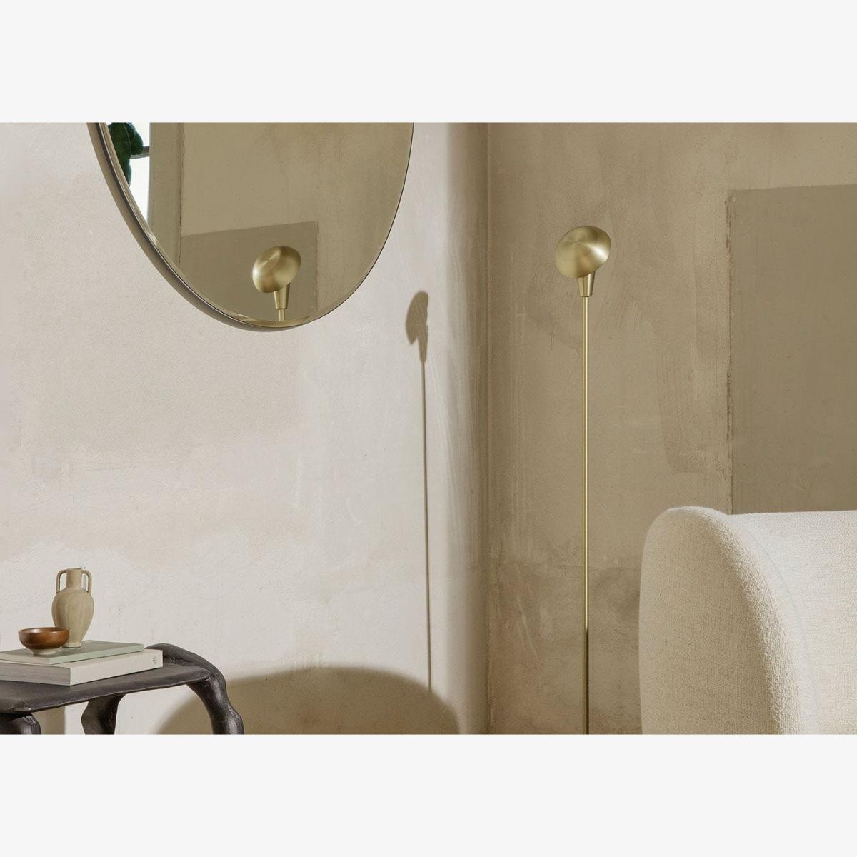 The Tiny floor lamp in brass works as a functional and decorative light source in any room. Due to its small size, it can be easily placed where it's needed for extra light, however compact a corner. Inspired by industrial Art Deco, it exudes simplicity in both expression and its metal construction. The useful tipping head makes it possible for you to tilt the shade to create a different look of the lamp, as well as to suit the atmosphere of the room. Playing on proportions, the tiny shade in combination with the slim base gives Tiny its charismatic personality.