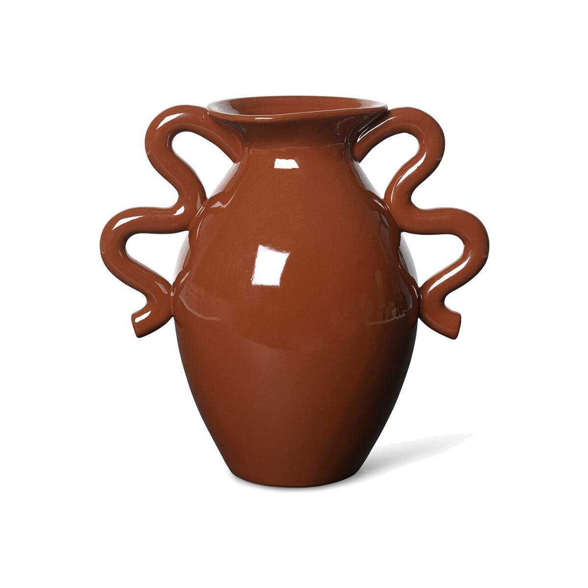 I love this vase for its bold, sculptural form and warm terracotta hue, which make it a versatile piece for many interiors. It works particularly well in contemporary and boho spaces, adding a tactile and grounding element. Style it with simple floral arrangements or even on its own as a statement sculpture. For practical tips, placing it on a sideboard or mantel allows its distinctive shape to be appreciated, and pairing it with other earthy tones creates a cohesive, relaxed look. Its sturdy build makes it suitable for both fresh and dried flowers, making it a flexible choice for seasonal updates.