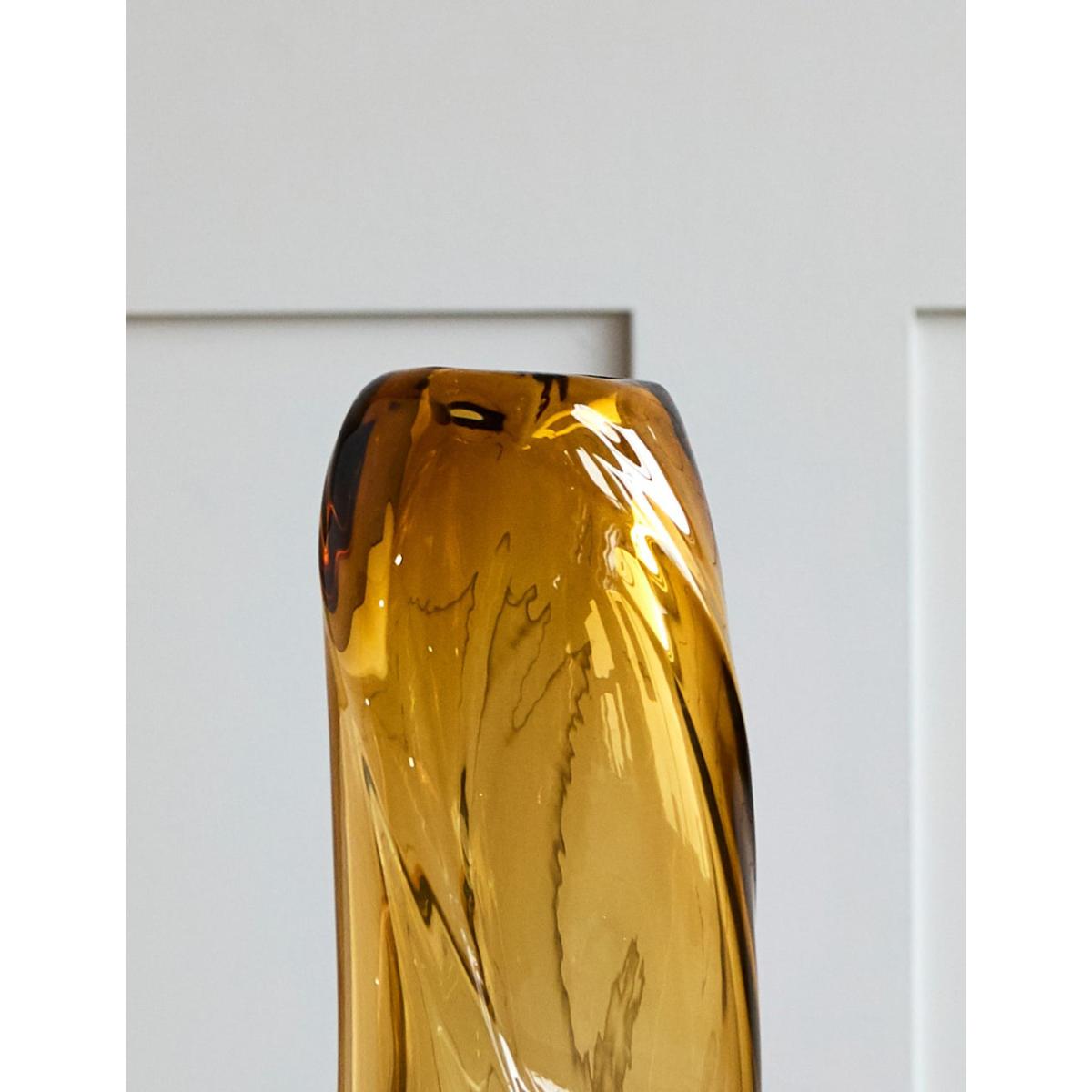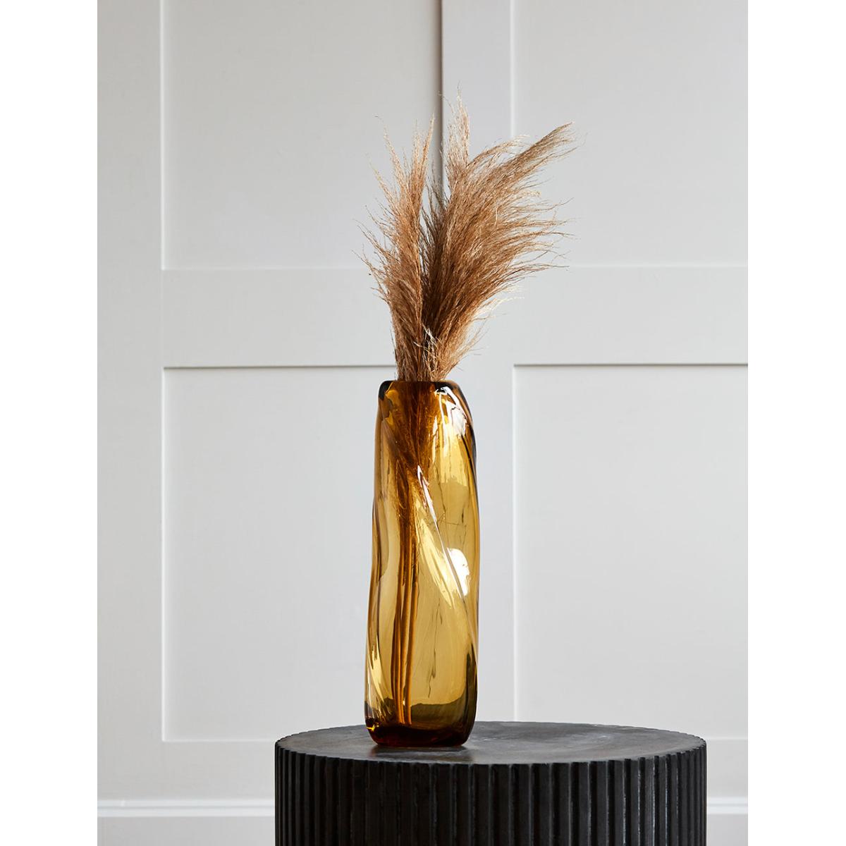 This beautifully designed glass vase is mouthblown, meaning that each vase is unique. The design resembles a swirl of cascading water and catches the light beautifully. This is a true investment piece that will add an elegant touch to your home.