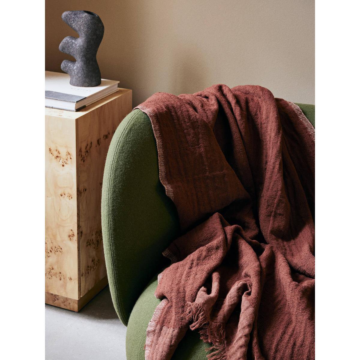 The ferm LIVING Weaver throw in red-brown is a versatile piece that adds warmth and texture to a variety of interiors. I love it for its understated colour palette, which complements both neutral and rich tones, making it ideal for Scandinavian, modern rustic, or boho spaces. It works well draped over a sofa or layered across the foot of a bed to create a cosy, inviting feel. Practical styling tips include pairing it with natural materials like wood or rattan to enhance its tactile quality, or folding it neatly in a basket for quick access during colder months. Its size makes it perfect for adding visual interest without overpowering the overall scheme.