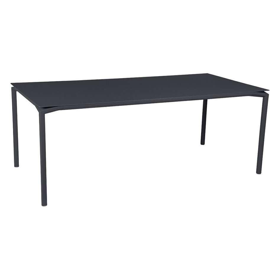Enjoy al fresco dining in style with this Calvi garden dining table from Fermob. Crafted from aluminium, the tabletop appears to float above the base. Available in three charming colours, this large table comfortably seats up to ten people, with two sat at each end. Suitable for using both indoors and outdoors, a leg riser is included to allow rain to run off the top. Key features: * Material: aluminium * Dimensions: H74xL195xW95cm * Black colour * UV resistant * Comfortably seats up to 10 people * Tabletop appears to float * Includes a leg riser to allow rain to run off * Suitable for indoor and outdoor use
