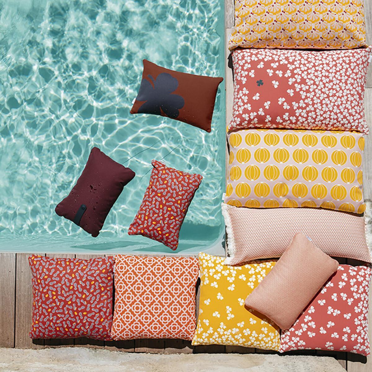 Give your garden furniture an instant refresh with this Colour Mix Bistro outdoor cushion from Fermob. Crafted from a water-repellent acrylic fabric, it features a plastic strap that is fastened with a snap button, perfect for securing to a chair. Available in array of charming colours, this stylish cushion pairs beautifully with Fermob's garden furniture collection. Key features: * Material: acrylic * Filling: high-resilience foam * Dimensions: 44x30cm * Deep red colour * Features a plastic strap fastened with a snap button * Water repellent fabric * UV resistant * Removable cover * Brush away stains * Must be brought inside during bad weather