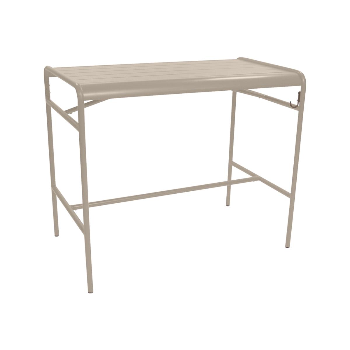 Enjoy drinks in the garden with this Luxembourg bar table from Fermob. Crafted from aluminium and available in an array of charming colours, this modern bar table features two hanging hooks and a comfortable foot rest. Style with the Luxembourg bar stool to complete the look. Key features: * Material: aluminium * Dimensions: H104xL126xW73cm * Warm grey colour * With 2 handbag hooks * And a cross-piece for footrest * Aluminium tubular frame * High protection treatment for outdoor use * Anti-UV powder coating * Designed by Frédéric Sofia * Suitable for indoor and outdoor use