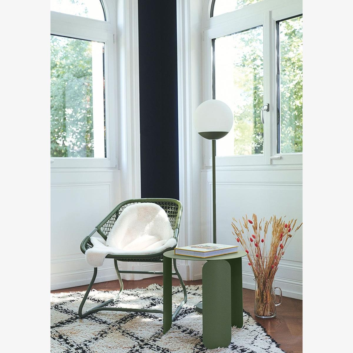 Designer Tristan Lohner was inspired by 19th century Paris street lamps to create the Mooon Table Lamp. Beautiful in its simplicity, this cactus green model pairs a slender aluminium frame with an oversized moon-shaped shade for a timeless look. The Mooon is rechargeable and weather-resistant, so it can be used outdoors as well as around the home. With two colour temperature options and adjustable light intensity, the Mooon can be adapted to suit a wide range of lighting needs. The lamp is touch-activated and can also be controlled via Bluetooth using the 'Fermob Lighting' app.