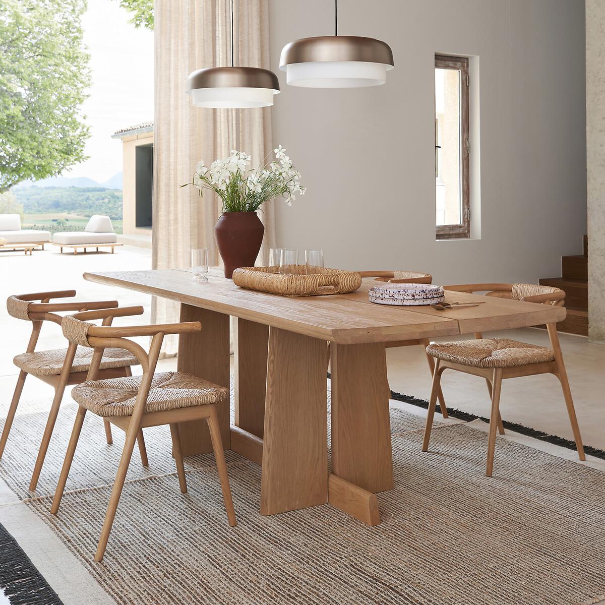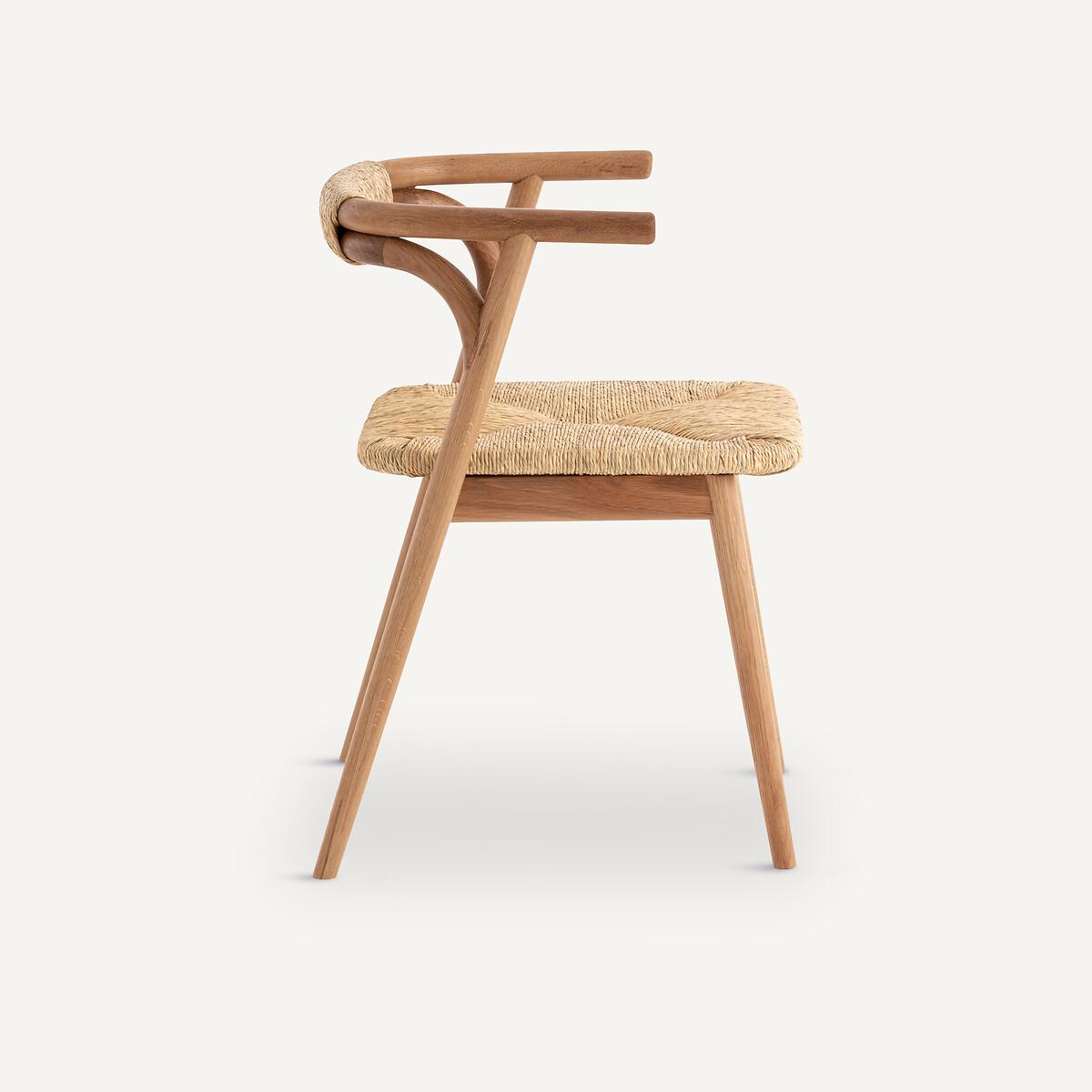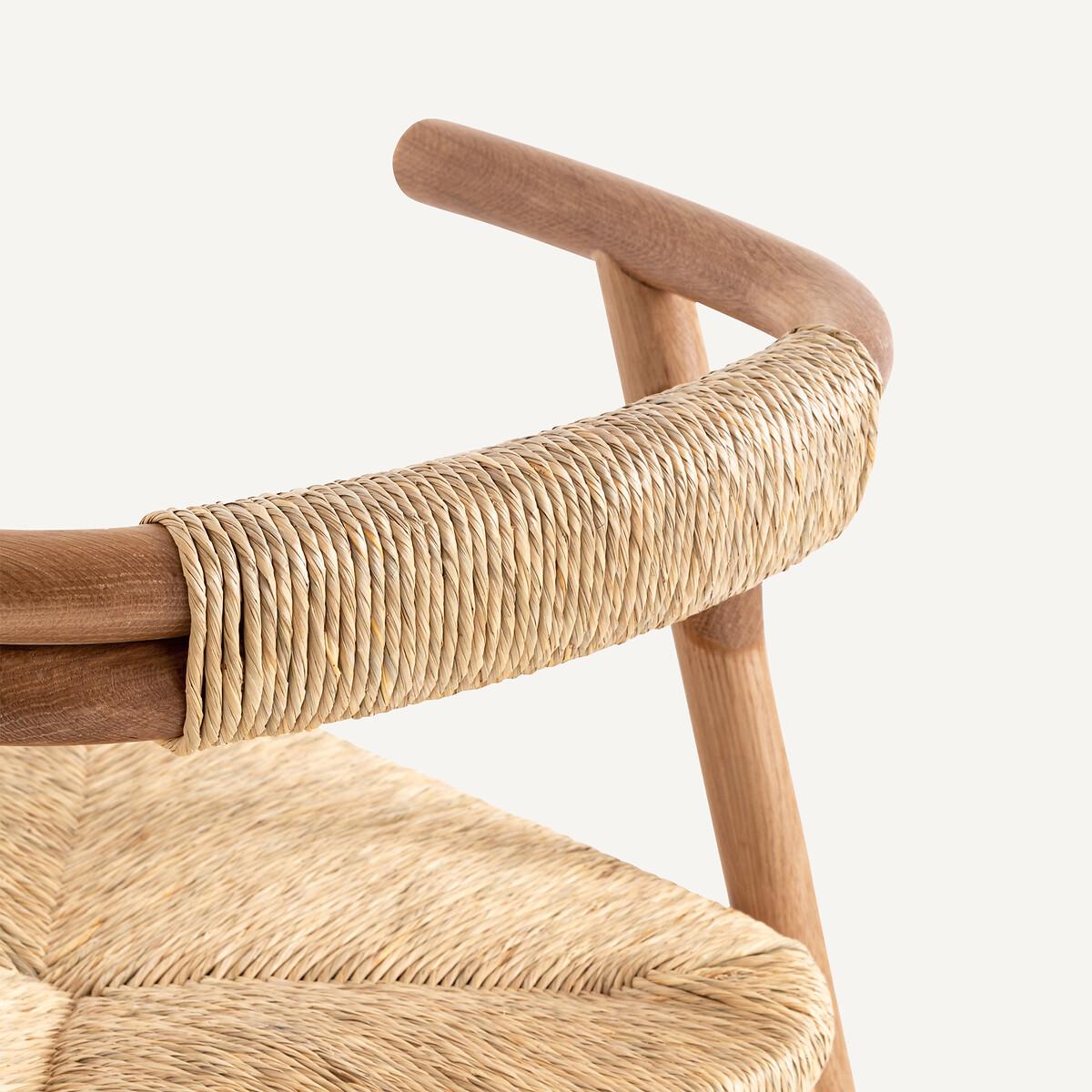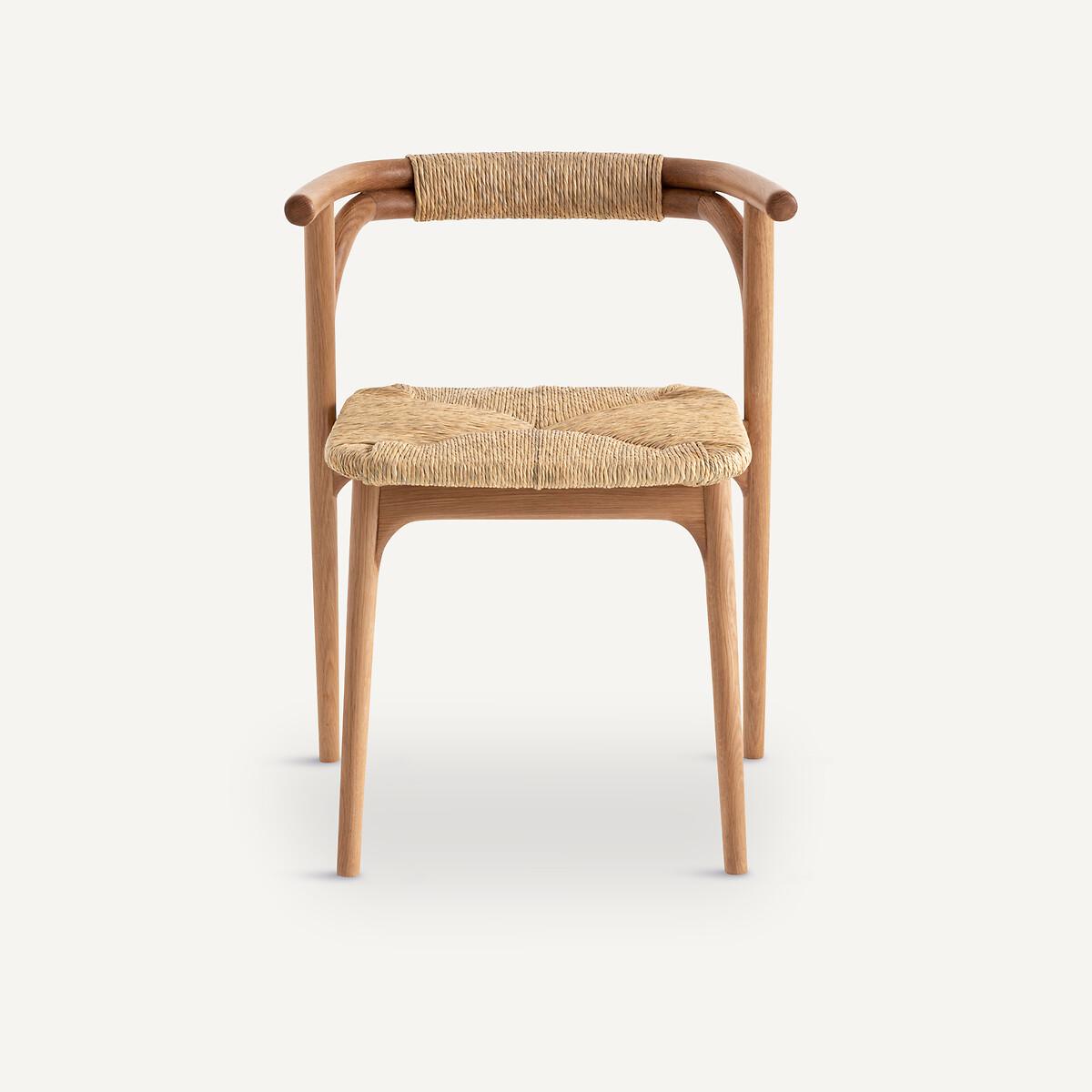 The Fermyo table armchair strikes the perfect balance between a curved solid oak backrest and a straw seat. Product Details • Structure in solid oak with nitrocellulose finish • Seat and back woven with traditional straw • Handcrafted, the braiding of the seat and the sheathing of the backrest are made by hand. Dimensions • Width: 54.5cm • Height: 71cm • Depth: 51.5cm • Seat: L45 x H45.5 x D46.5cm Delivery:Sold pre-assembled. Available for home delivery. Note! Please check that all access points are large enough to accommodate your delivery (doors, stairs, lifts). • WOOD FROM SUSTAINABLY MANAGED FORESTS. FSC® certified wood comes from forests that are environmentally, socially and economically well managed. Dimensions and weight of parcel1 parcel • L60 x H78 x D57cm. 13kg.