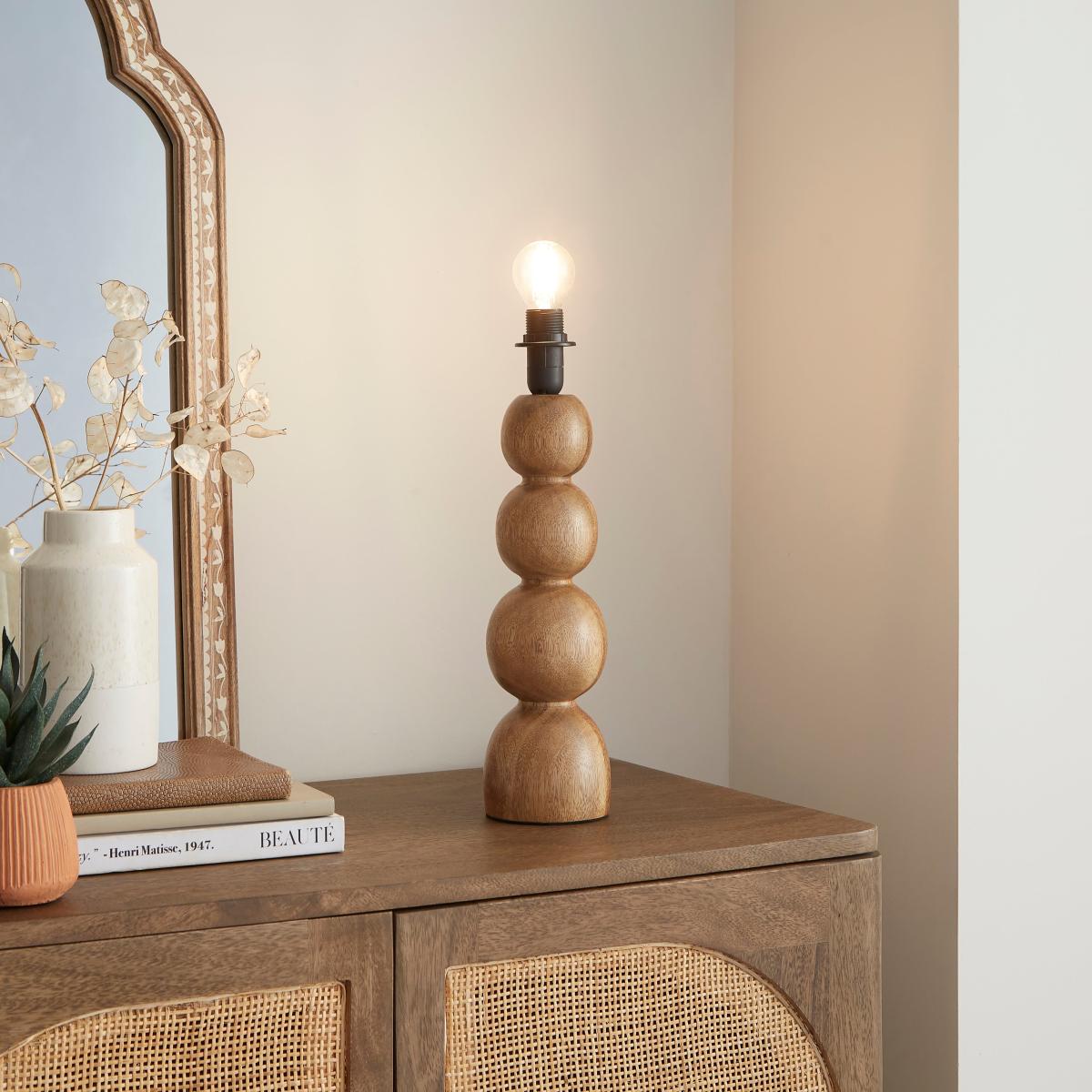 * Unique Bobble Design* Made from Durable Wood* Hand-Crafted in India An eye-catching lamp base, this piece is the perfect addition to your home - simply pair it with your favourite shade. Made from high-quality wood and hand-crafted in India, the Fern Bobble Lamp Base is your newest must-have. Please Note: Shade is not included.
