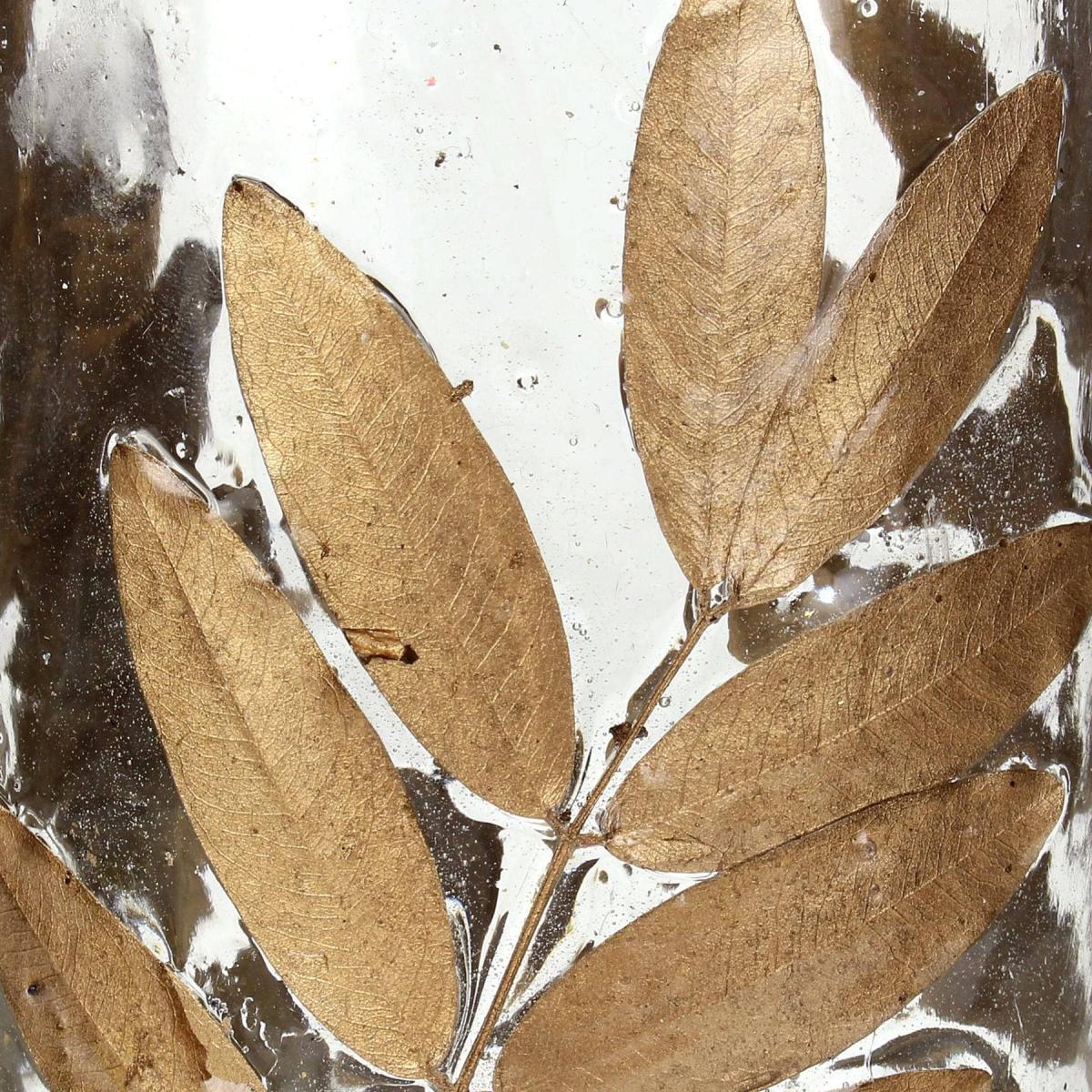 Adorn your home with the ambient glow of our elegant Fern candle holder. This nature-inspired glass candle holder evokes a feeling of warmth and is ideal for displaying on a mantelpiece or coffee table. Place a tealight or small candle inside the holder and watch its golden light glimmer to create a cosy ambiance.