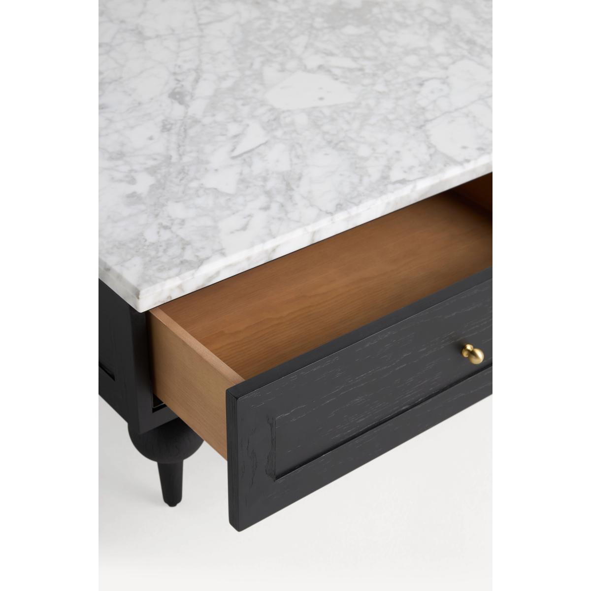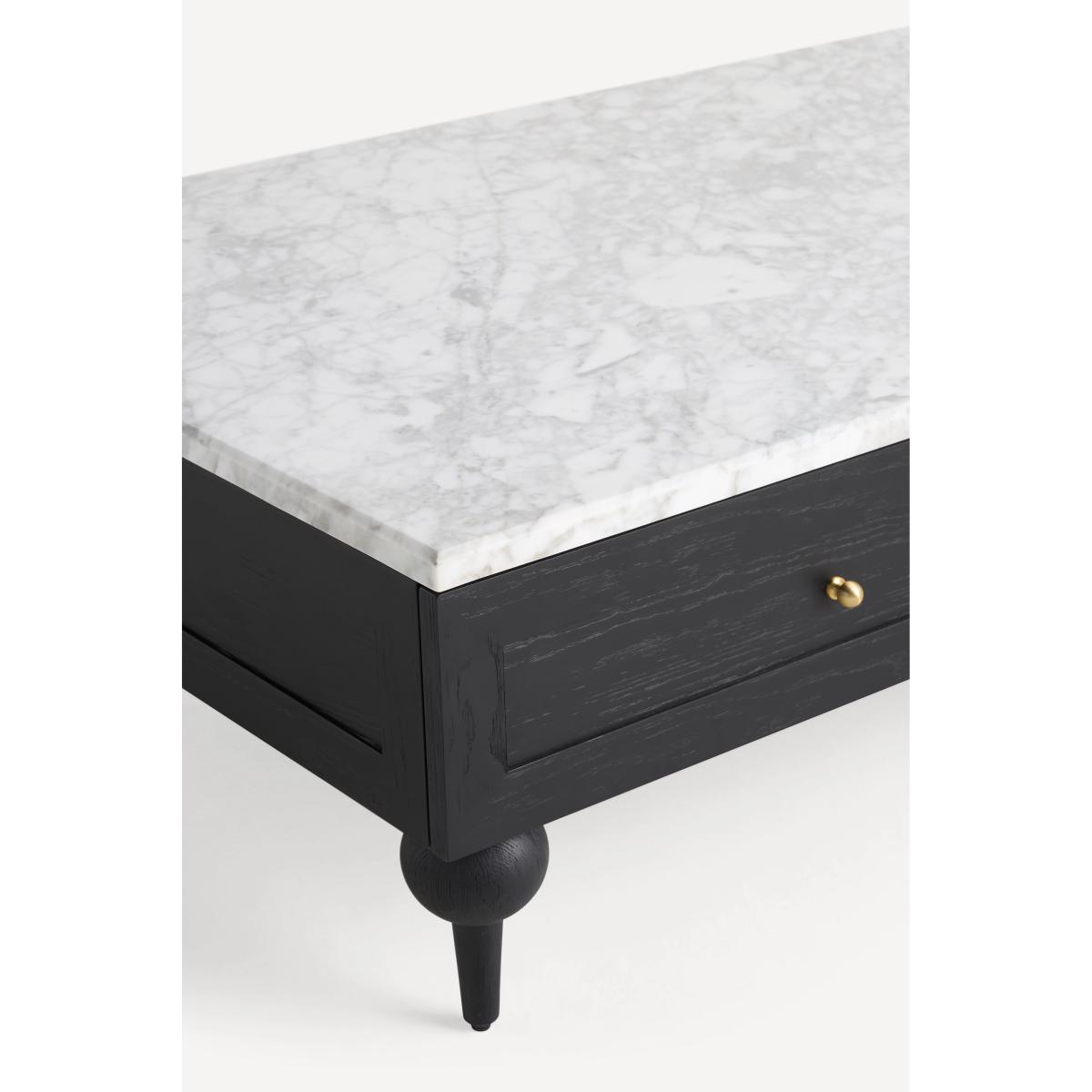 I’m a fan of “the Fern” for its clean-lined silhouette and contrasting marble top, which instantly lifts a room without overwhelming it. The black-painted base with brass knobs suits both contemporary and classic schemes - pair it with a neutral sofa and muted rugs for a Scandi-inspired look, or layer in textured linens and leather accents for a more eclectic space. Styling-wise, keep the top clear around a low decorative tray, a couple of coffee-table books and a sculptural vase. The two drawers are ideal for stashing remotes and coasters, so your surface stays uncluttered and inviting.