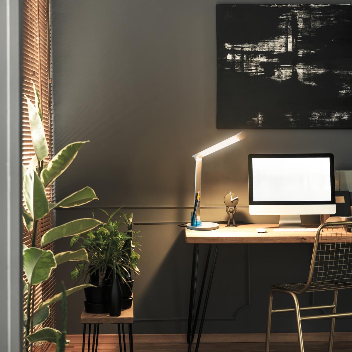 I love this desk lamp for its sleek, modern white finish that easily blends into various interiors, from minimalist workspaces to contemporary bedside tables. Its dimmable feature makes it versatile for different lighting needs, whether you need bright task light or softer ambient glow. The integrated USB port adds practical value, perfect for keeping devices charged without clutter. Stylistically, it works well paired with clean-lined furniture and neutral palettes, but it can also provide a crisp contrast within a colourful or textured setting. For styling tips, position it on side desks, in home offices, or on bedside tables, and consider pairing with other white or metallic accessories to create a cohesive, functional look.